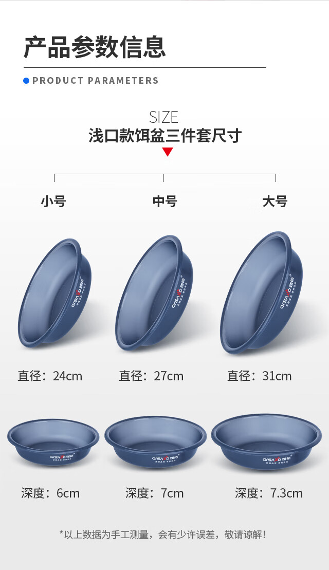 Zhenyou (Grsaed) fishing bait basin open bait basin fishing basin fish food basin bait box non-stick bait loose cannon basin fishing gear auxiliary equipment shallow large, medium and small three-piece set