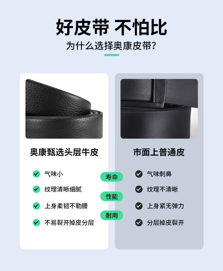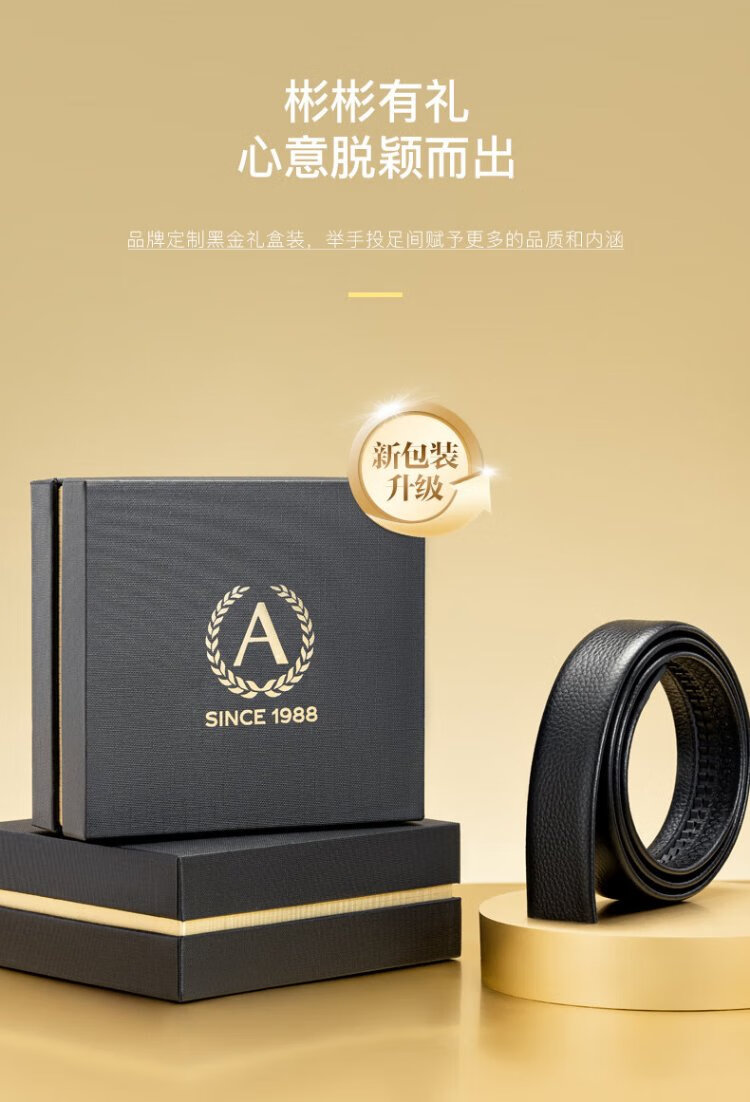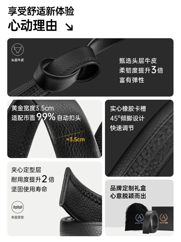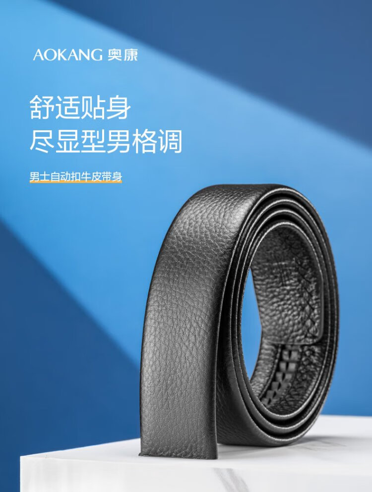 Aokang belt without head men's first-layer cowhide belt strip automatic buckle belt without buckle head belt Christmas birthday gift