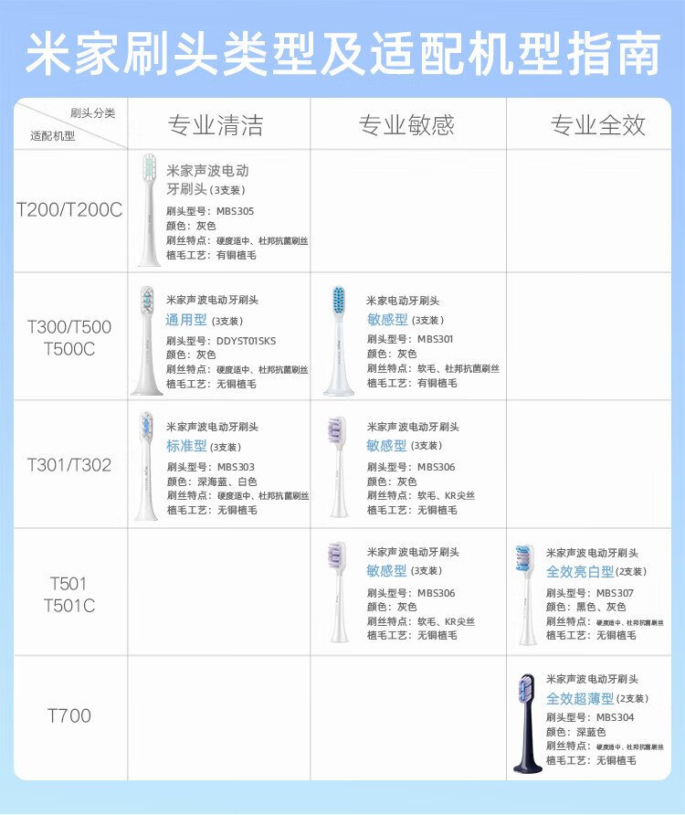 Mijia Adapter T301/T302 Mijia Sonic Electric Toothbrush Head (Standard Type) 3-pack