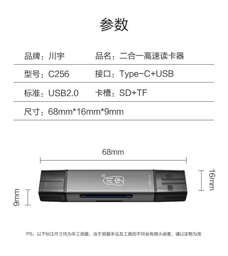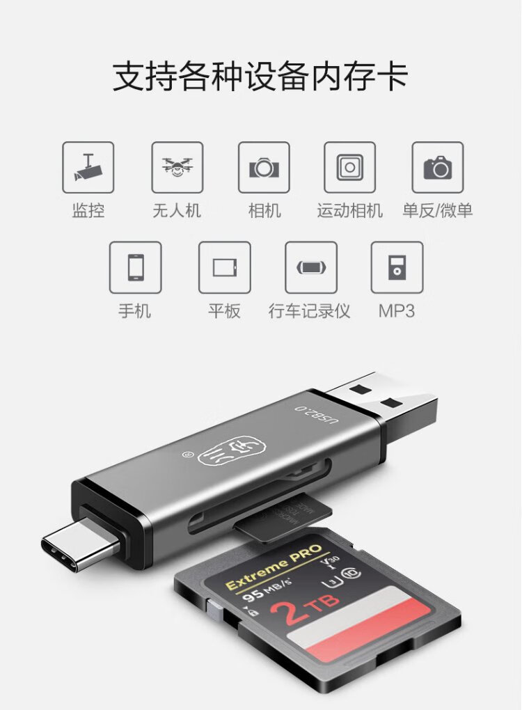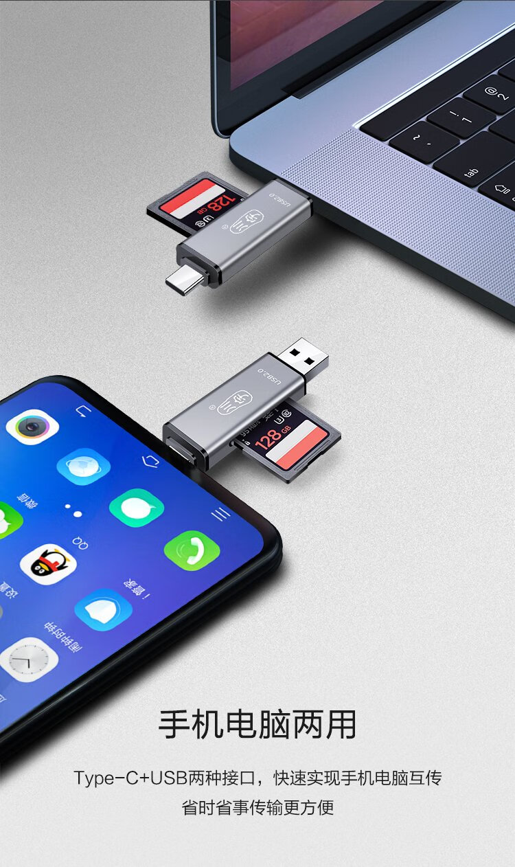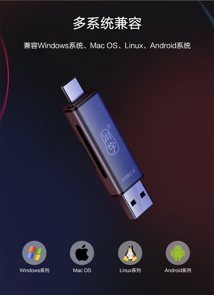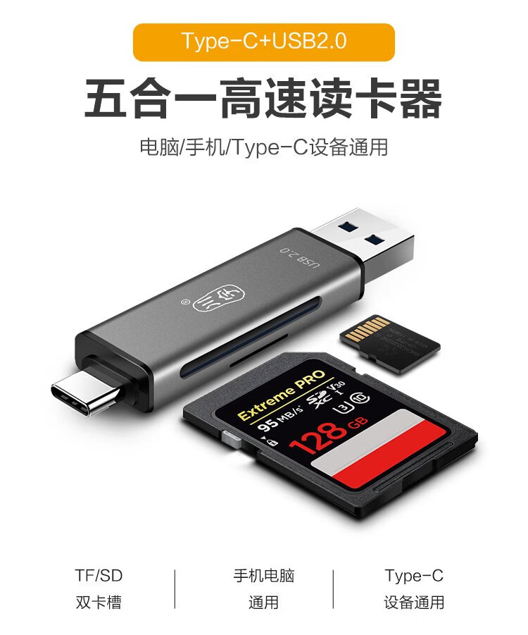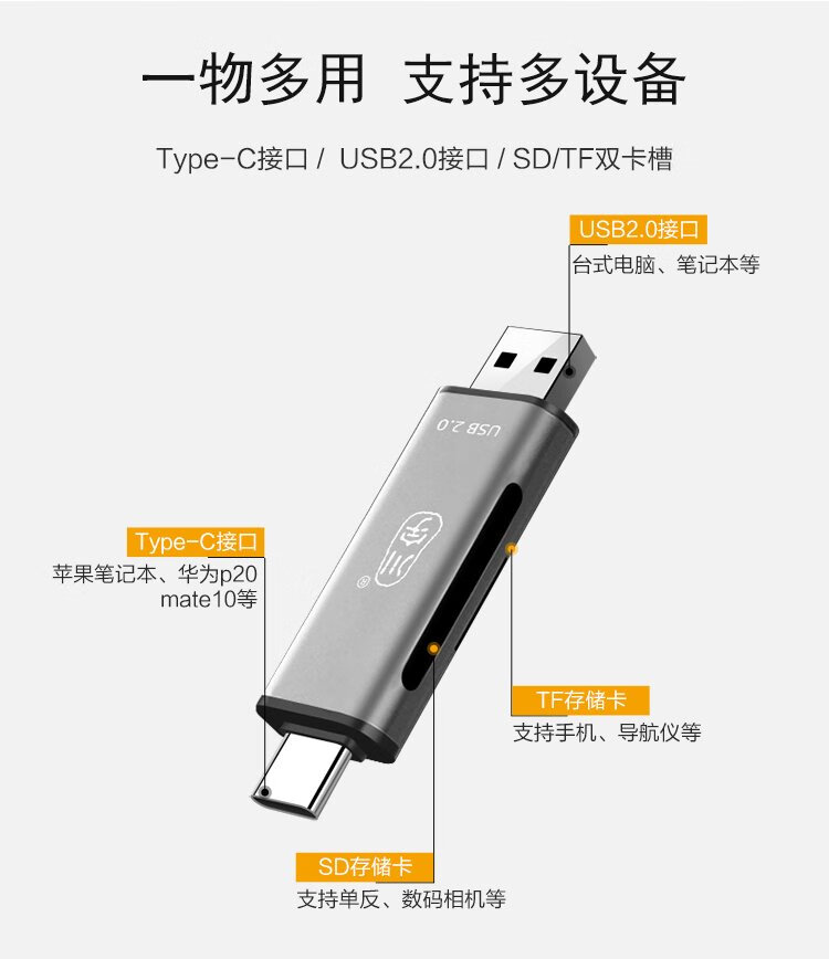川宇USB高速SD/TF卡铝合金读卡器Type-c单反相机存储卡行车记录仪无人机电脑苹果手机内存卡多功能合一