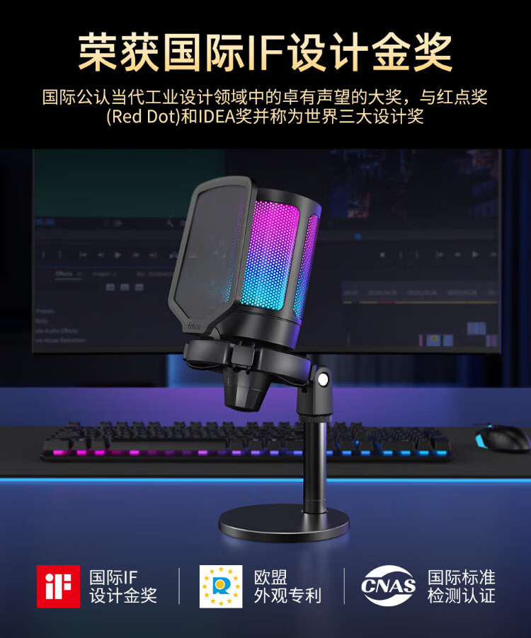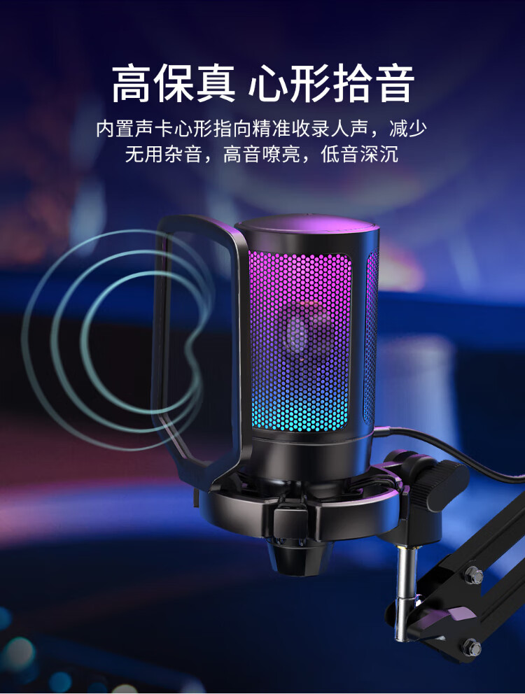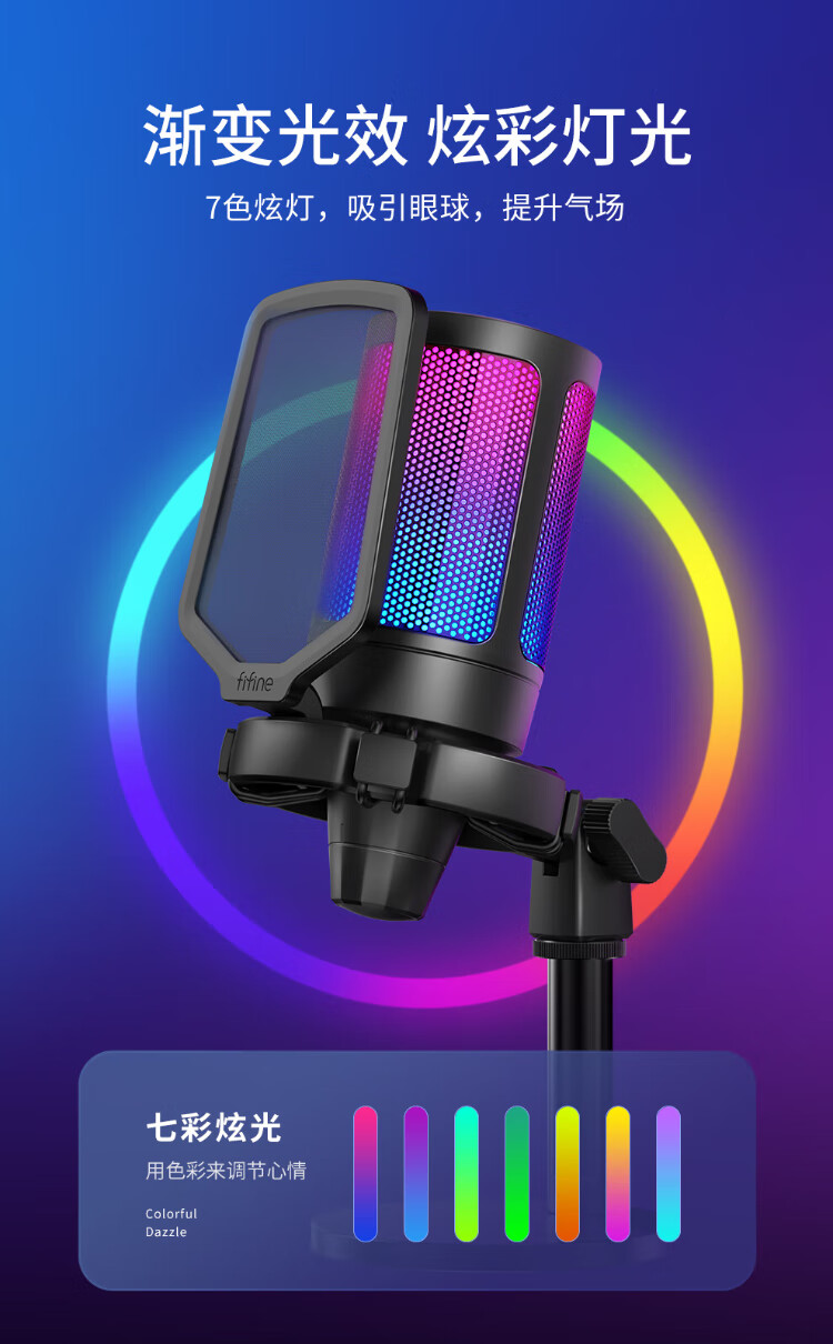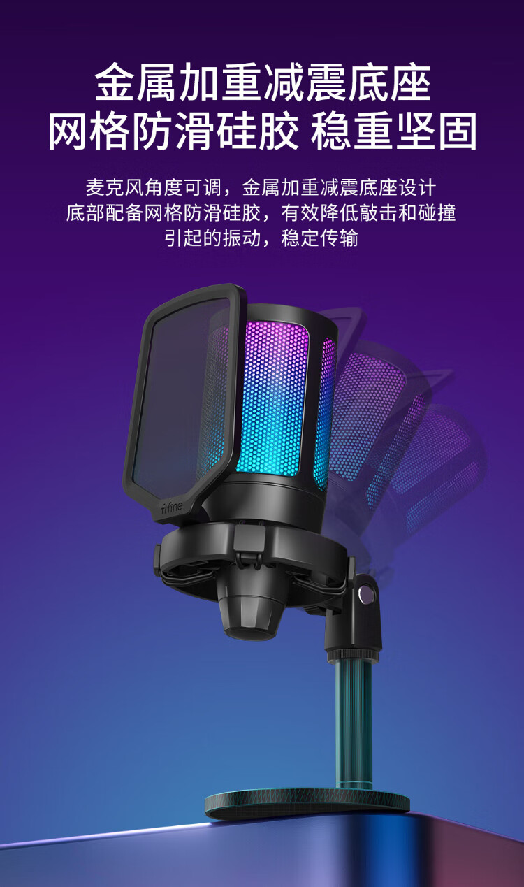 FIFINE computer microphone live broadcast game e-sports anchor singing condenser noise reduction vibrato video notebook desktop usb wired directional radio external microphone A6 cantilever