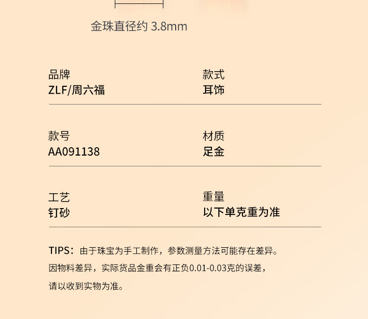 Saturday Blessing Pure Gold Gold Beads Frosted Gold Stud Earrings for Women Price AA091138 Approximately 1.06g A pair of birthday gifts