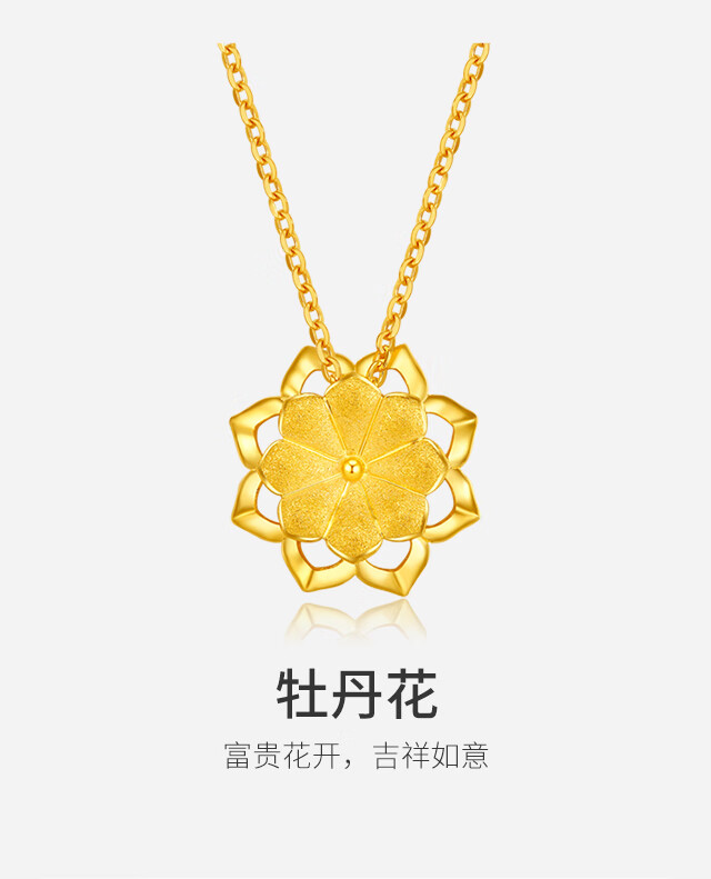 Saturday Blessing Pure Gold Necklace Women's Peony Flower Pendant AC062228 Approximately 5.26g 42+2cm Birthday Gift Price