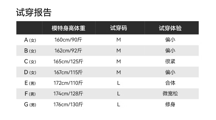 China (cm) 160-165/84-86 165-170 / 88-90 167-172 / 92-96 168-173 / 98-102 170-176 / 106-110