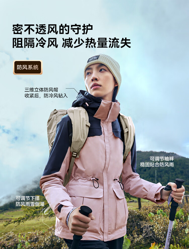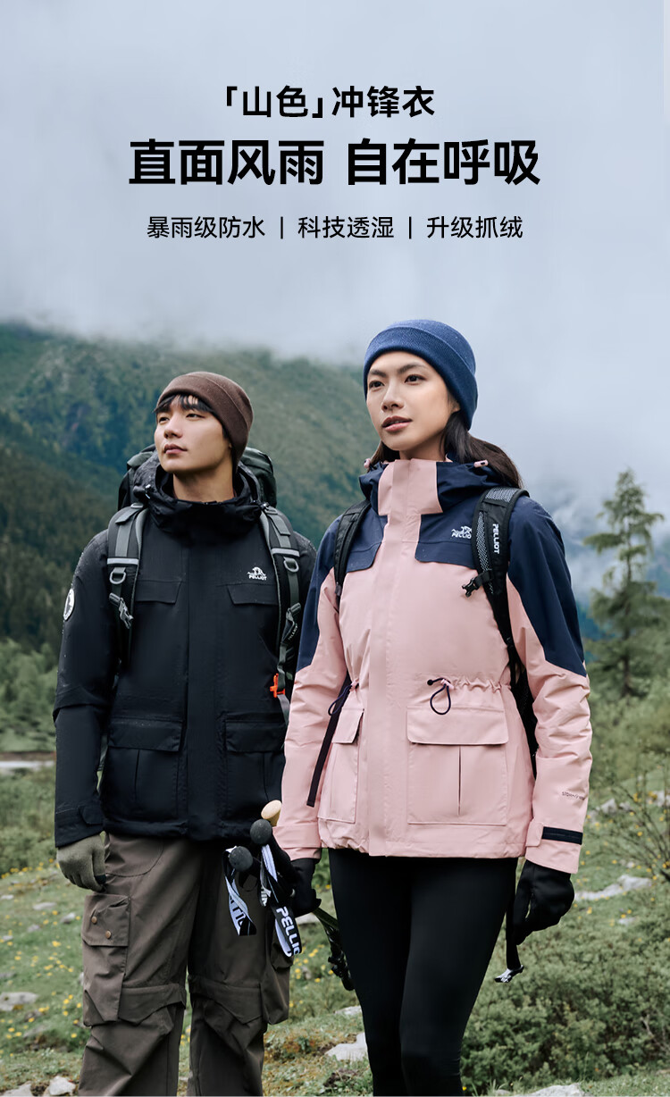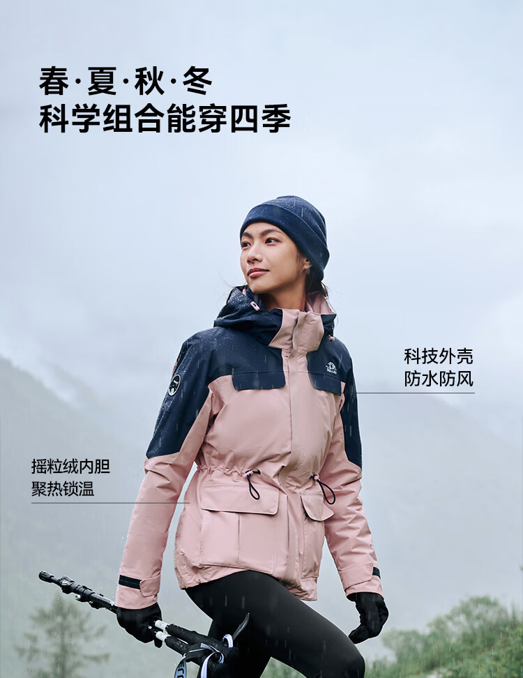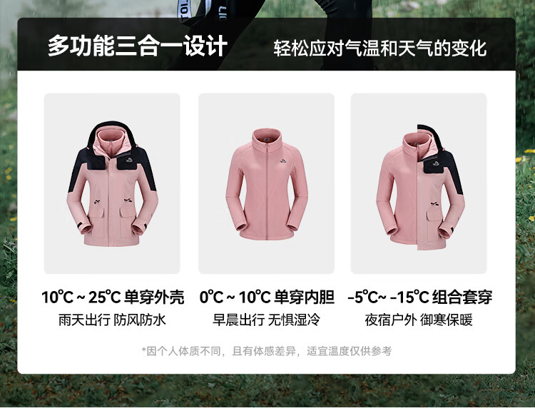Pelliot Mountain Color Jacket Three-in-One Men's and Women's Autumn and Winter Outdoor Windproof and Warm Fleece Jacket 12040106 Pink L