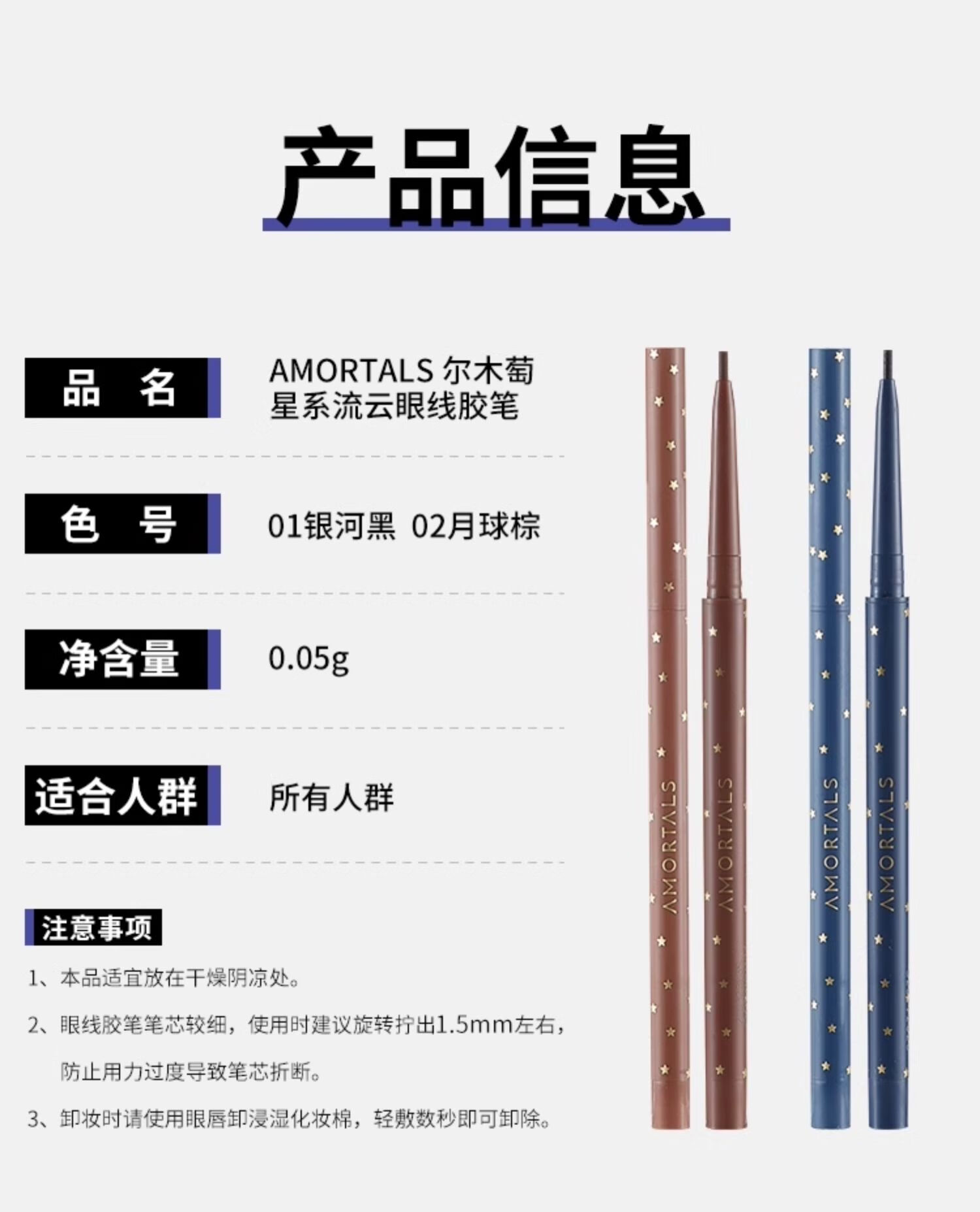 AMORTALS galaxy cloud eyeliner gel pen waterproof and sweat-proof quick-drying silkworm pen extremely fine liquid eyeliner pen suitable for novices and beginners