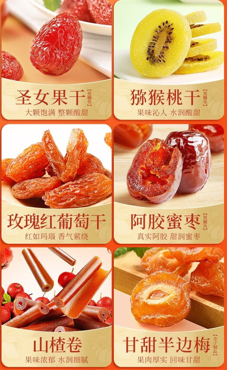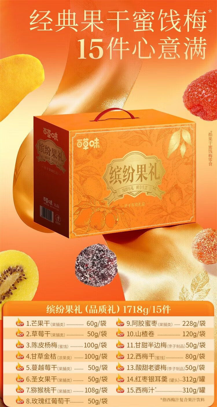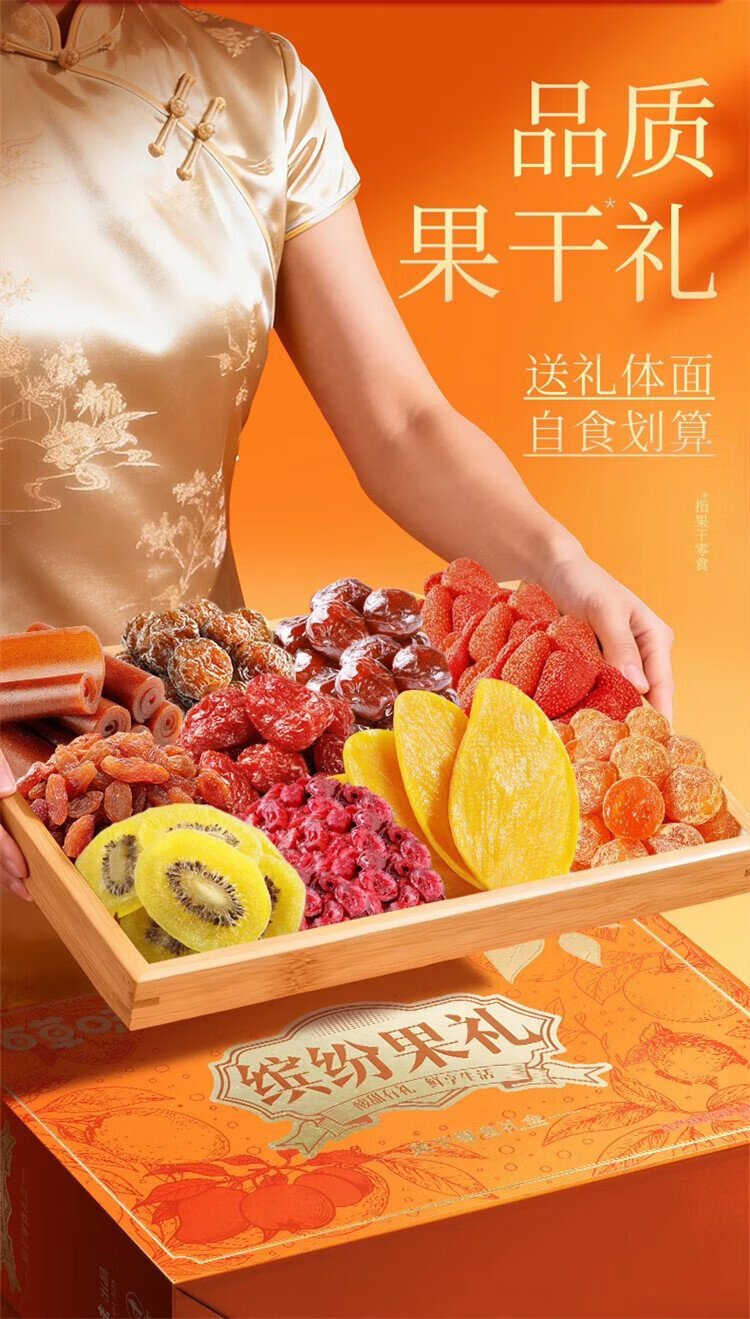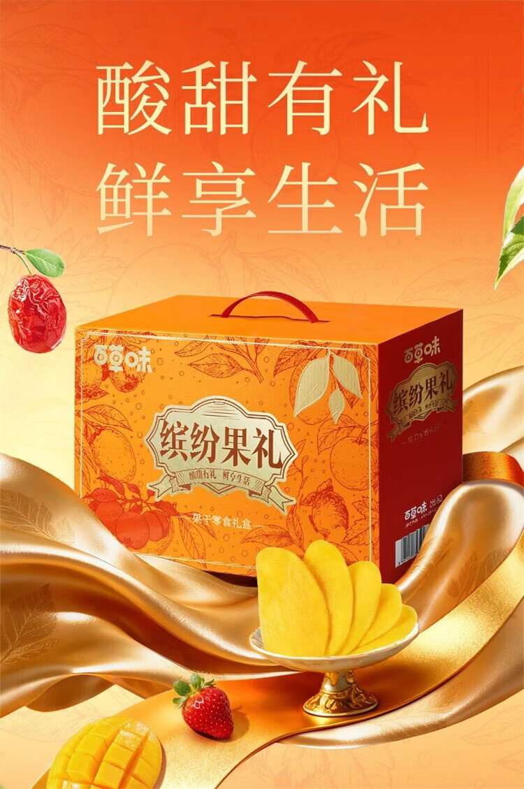 Baicao Flavor Dried Fruit New Year Gift Box 1718g Dried Mango, Red Dates, Hawthorn and Plum Casual Snacks Gift Pack New Year Gifts