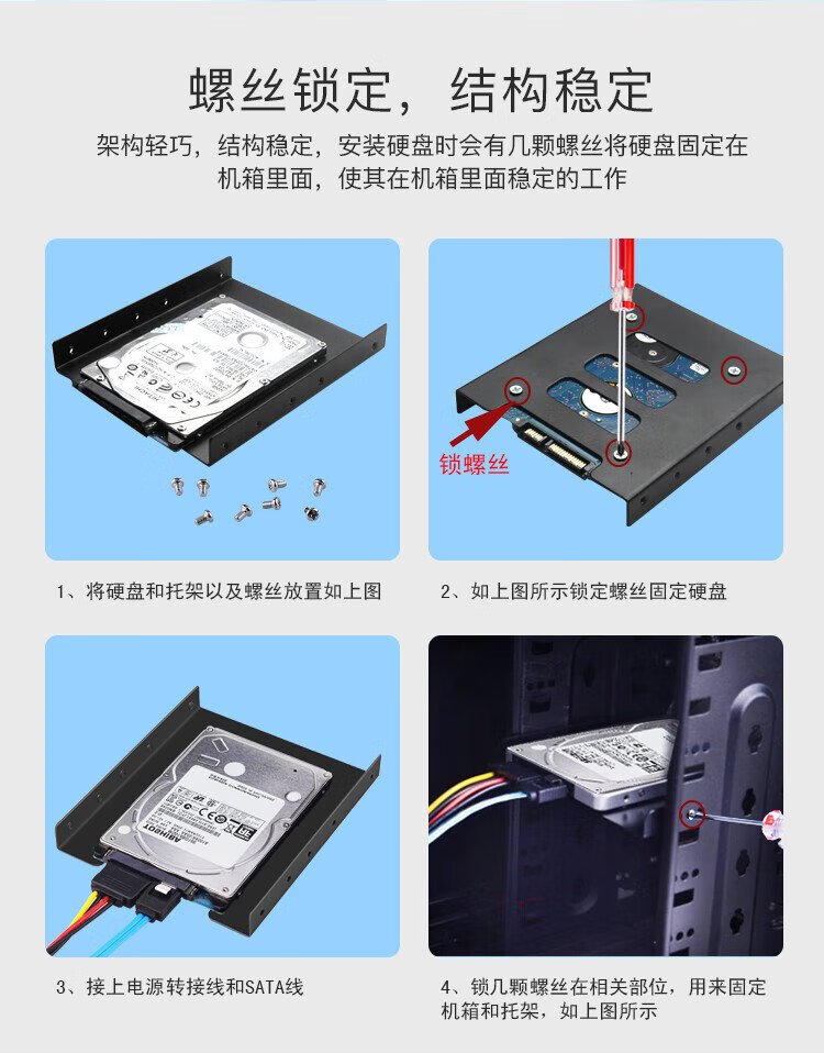 Liantuo Desktop Hard Drive Bracket 2.5 to 3.5-inch SSD Solid State Mechanical Hard Drive Bracket Hard Drive Bracket