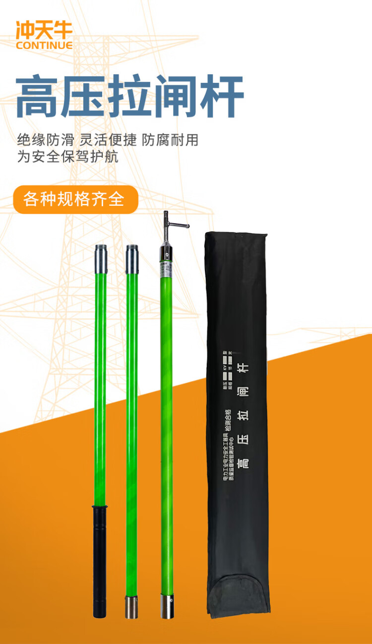 Cupola insulating rod insulating rod iron buckle type 10kv 3 sections 3 meters high voltage switching rod substation operating rod electrician ring rod