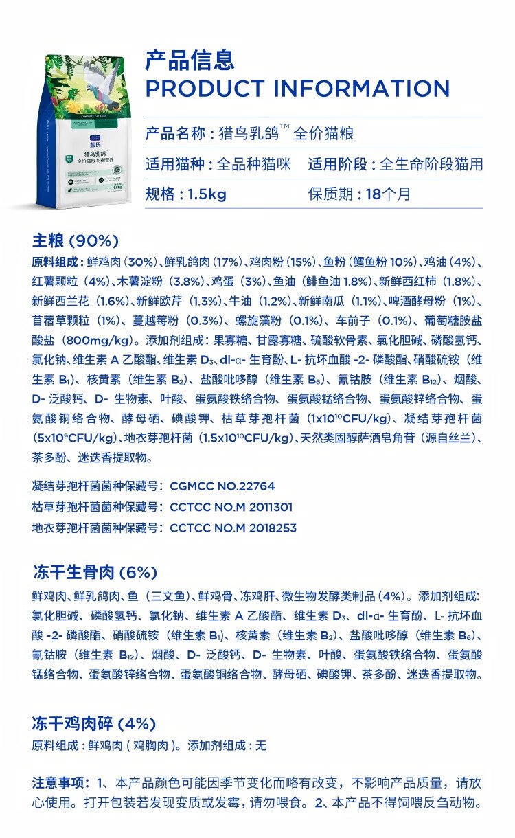 LEGENDSANDY Full Price Cat Food Raw Bone Meat Freeze-Dried Food for Adult Cats and Kittens Boxed Hunting Bird and Squab 4.5kg