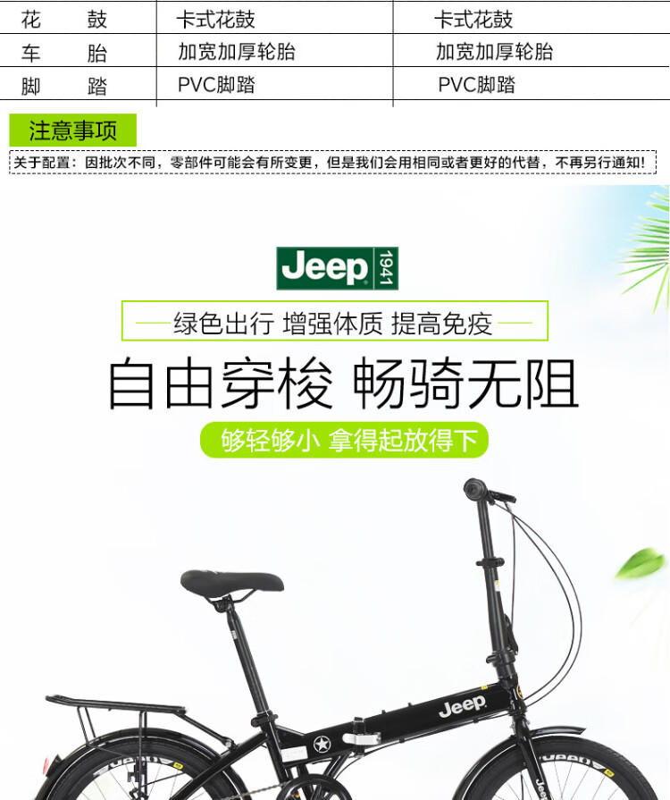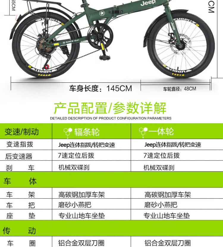 Jeep folding bicycle mountain bike 20-inch 7-speed men's and women's leisure vehicle student variable speed bicycle-spoke wheel