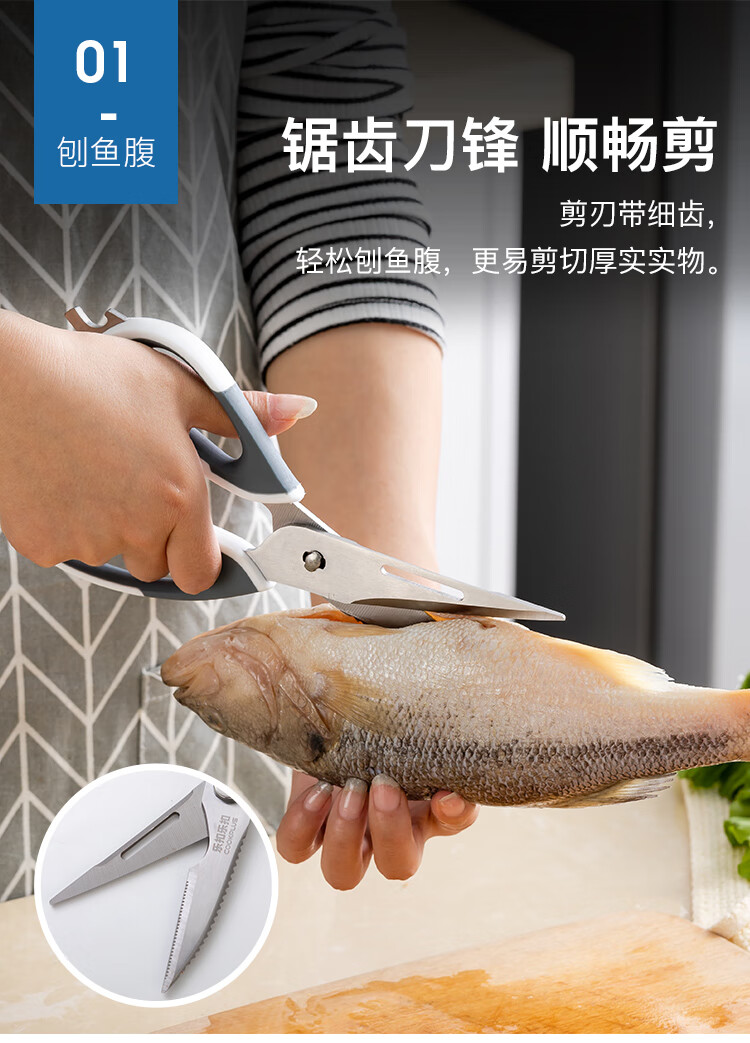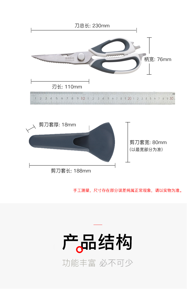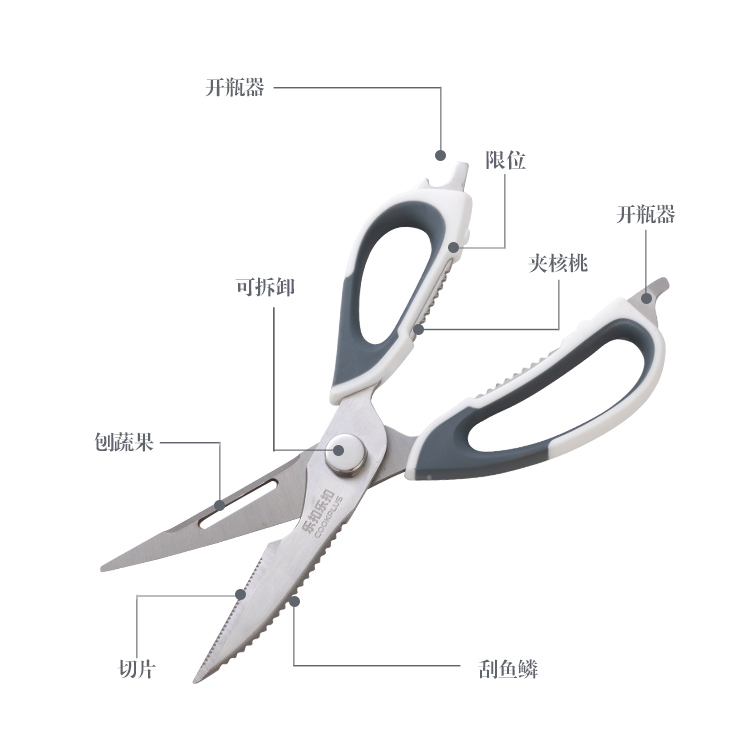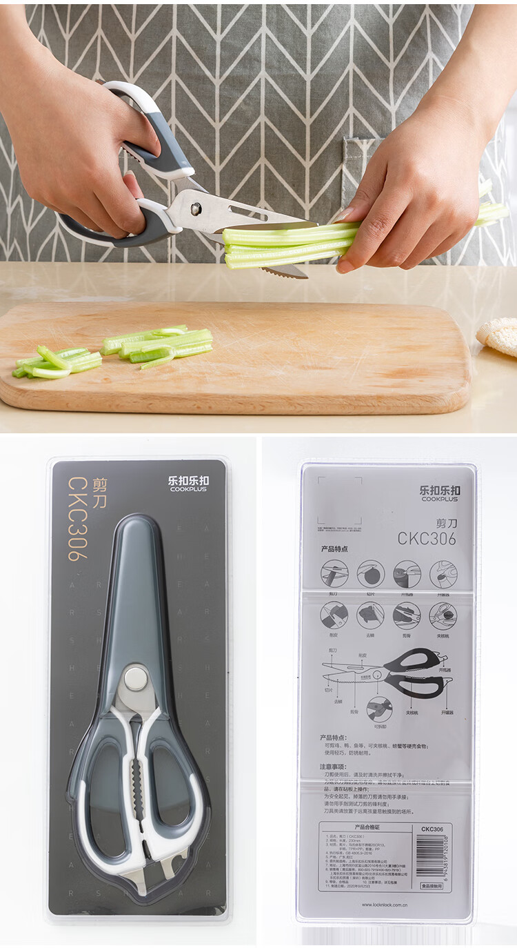 LOCK LOCK kitchen multifunctional stainless steel scissors scissors for cutting chicken bones, detachable fish killing and scraping fish scale scissors, food supplement scissors