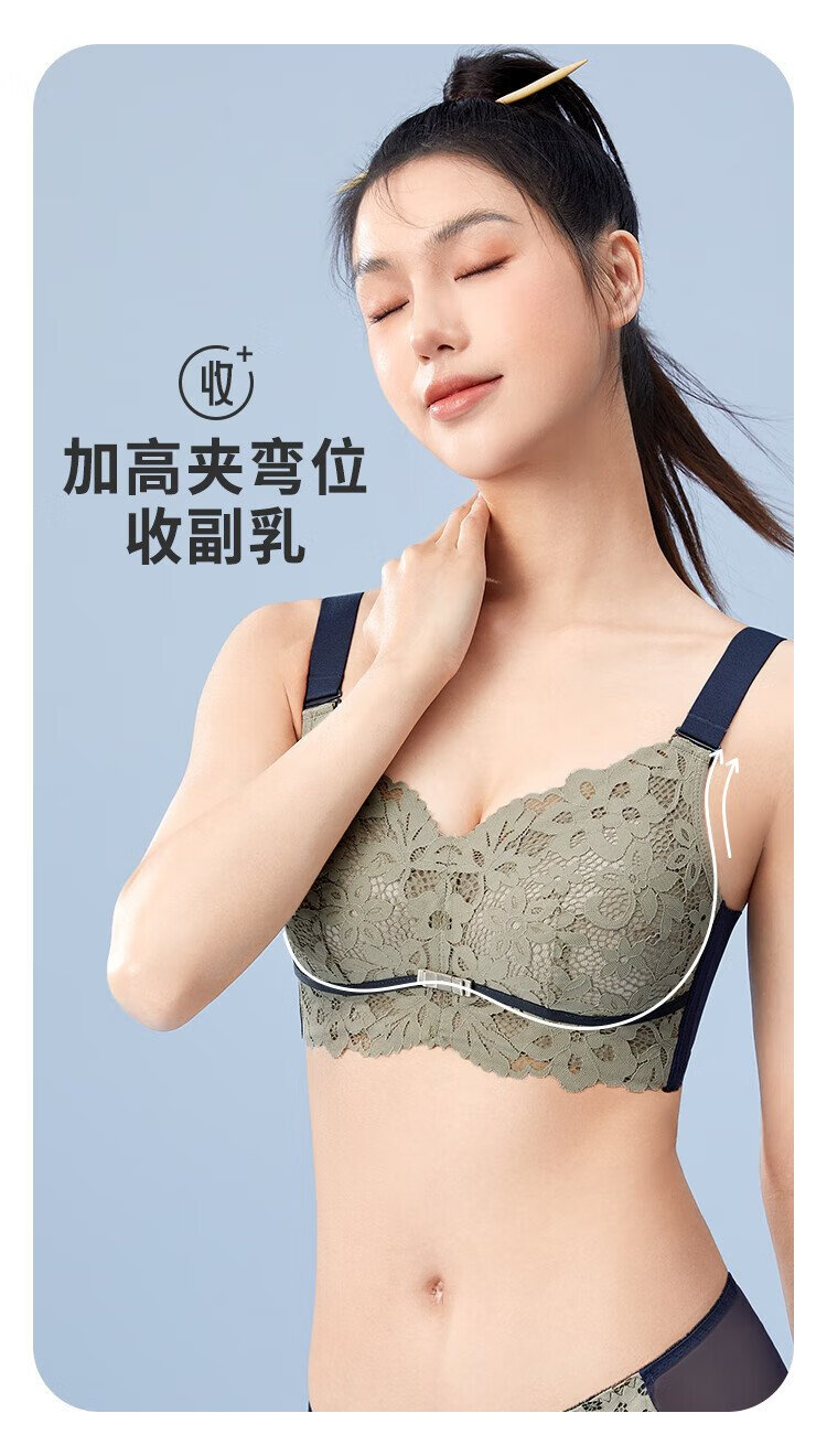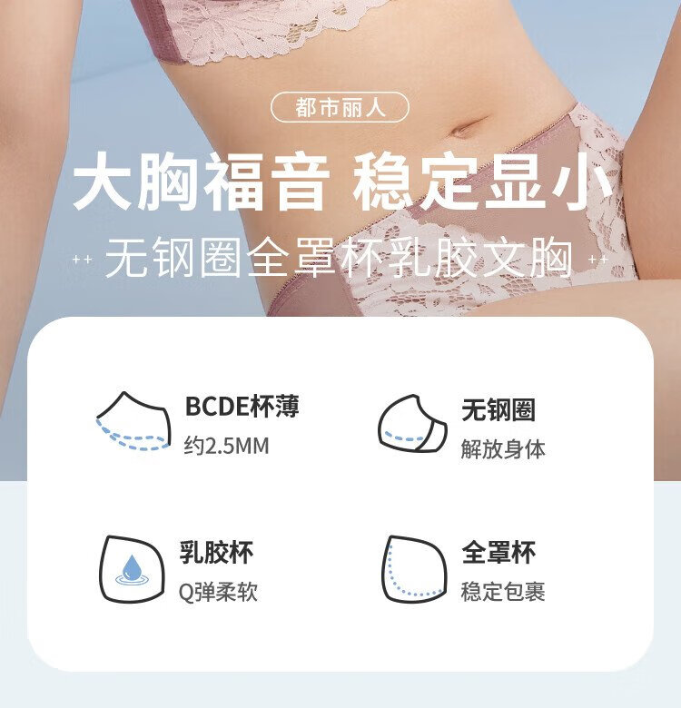 Urban Beauty Underwear Women's Wireless Lace Bra Thin Breathable Natural Latex Cotton Full Cup Big Breasts Show Small 2B23A8