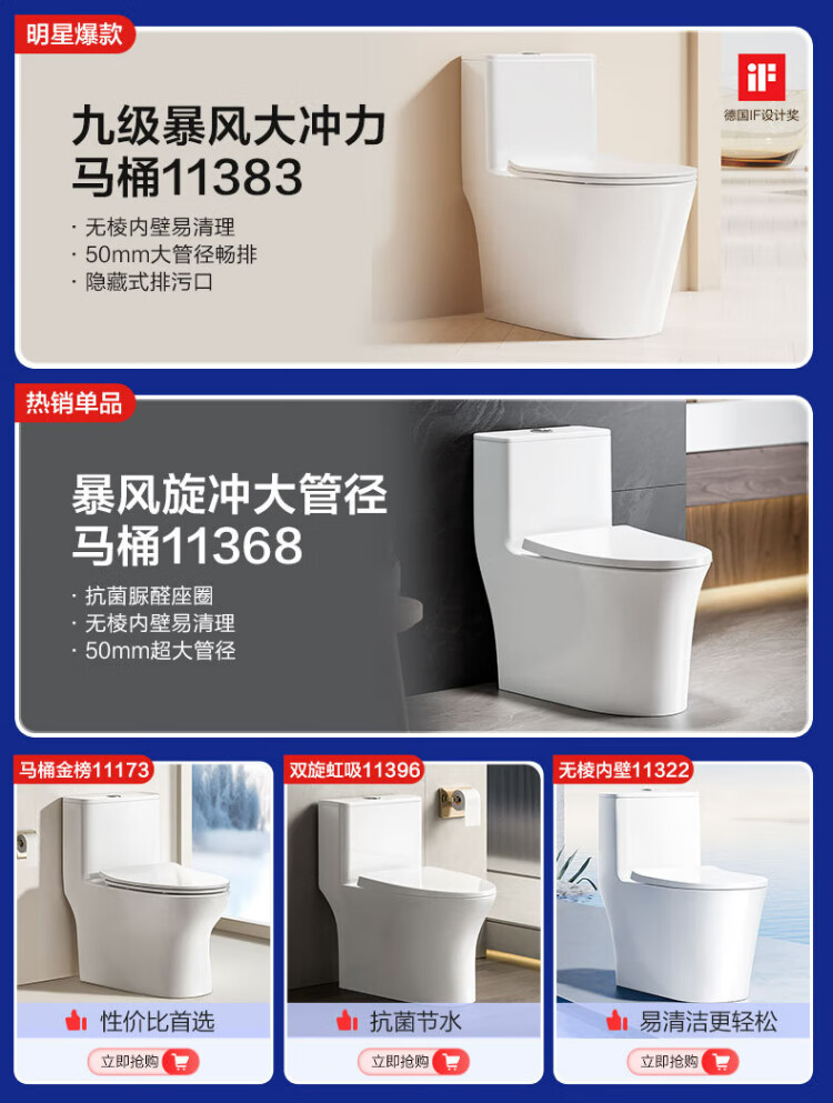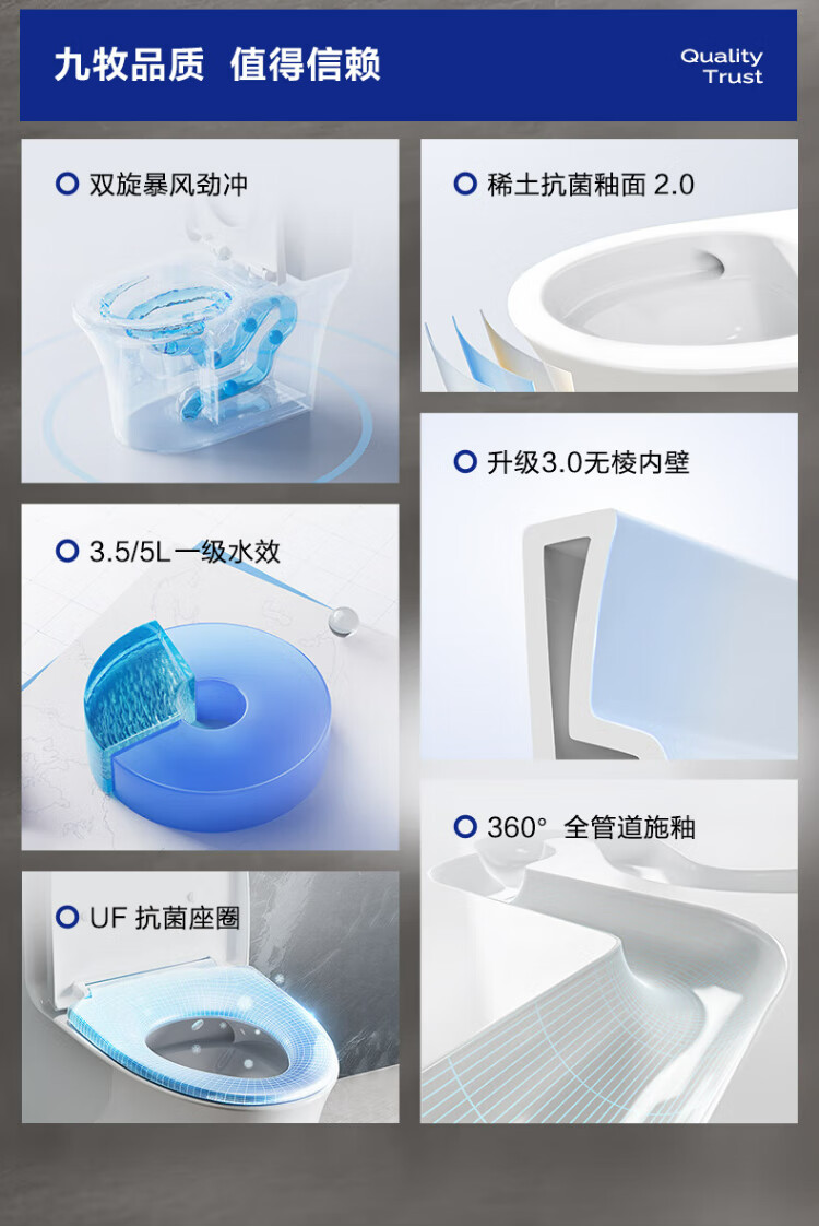 JOMOO 11368-2-2/31KB-2 toilet all-inclusive water-saving household high-impact storm siphon toilet 305 pit distance