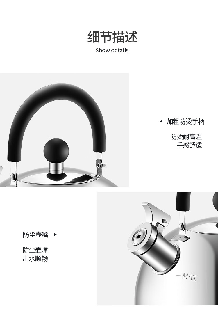 Maxcook kettle 304 stainless steel kettle 2L thickened sound zinc alloy spout general induction cooker MCH5497