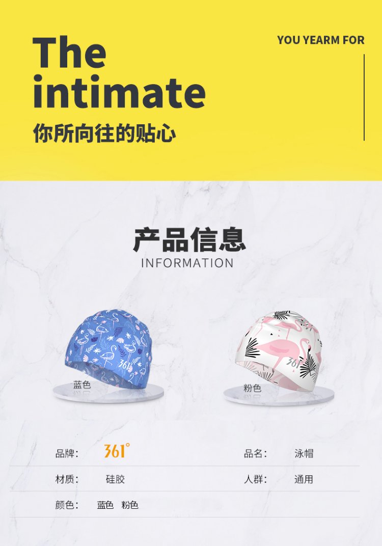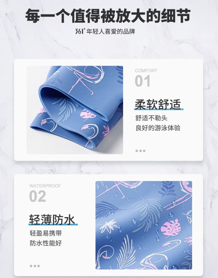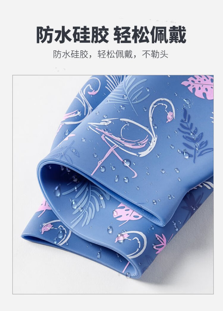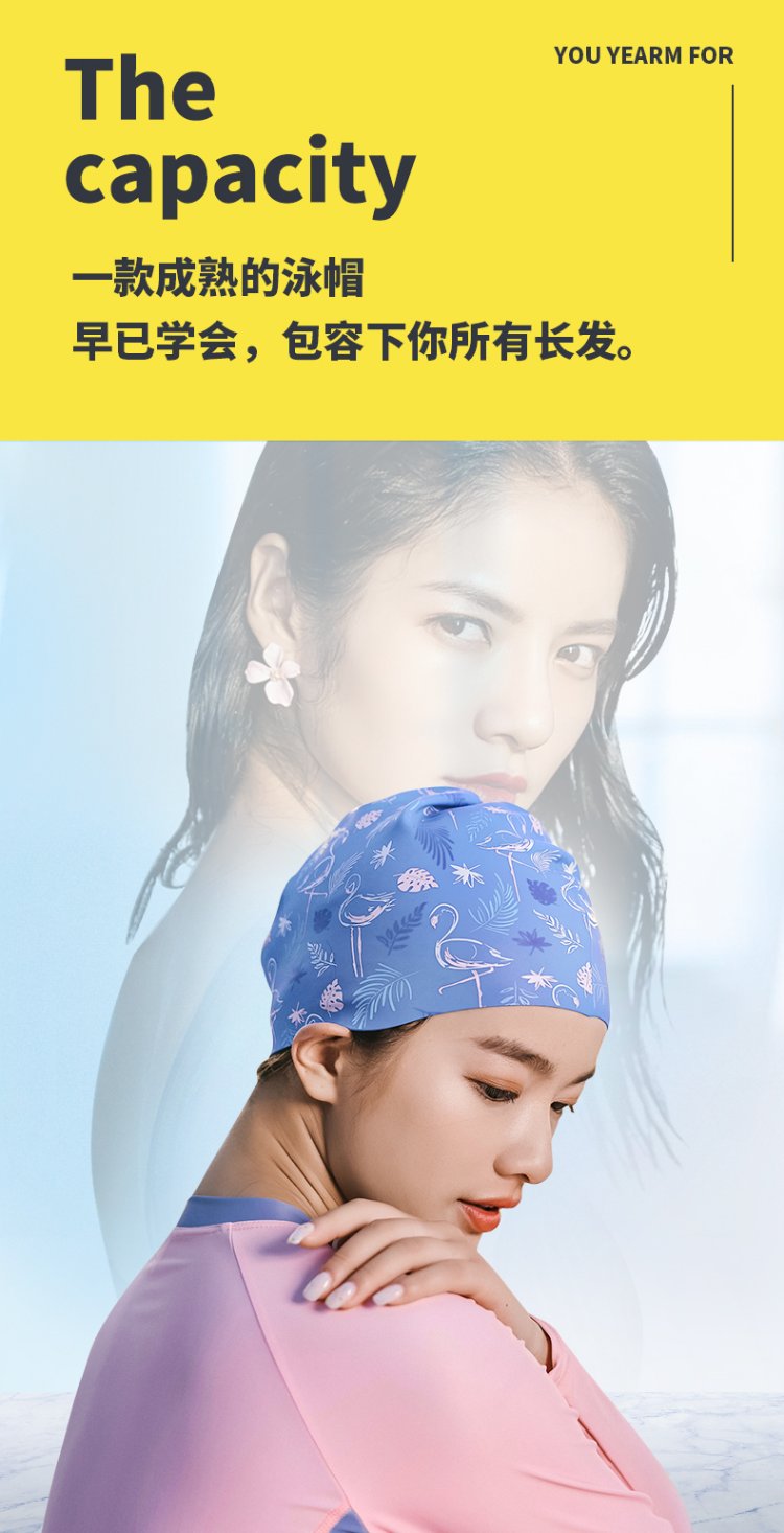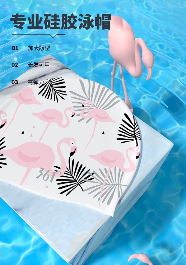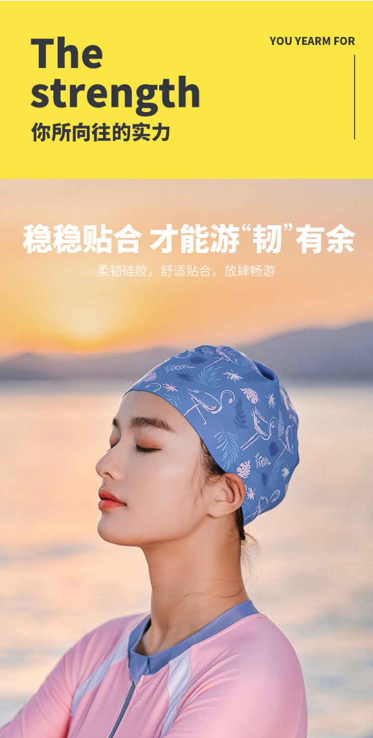 361 Swimming Cap Women's Silicone Printed Swimming Cap Adult Waterproof Ear Protection Comfortable Long Hair Increased Professional Training Silicone Swimming Cap