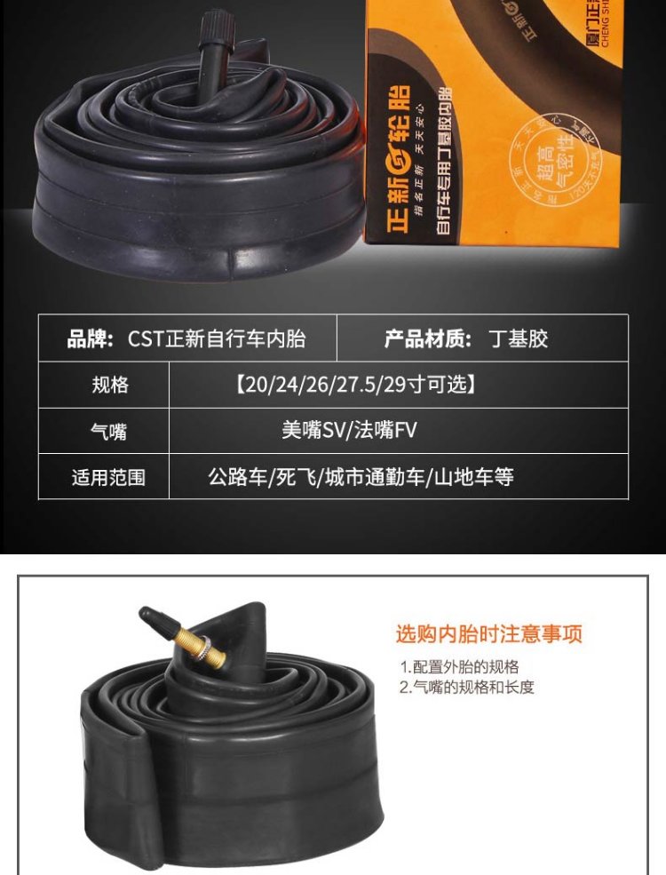 Zhengxin bicycle inner tube 26X1.90/2.125 Meizui 48MM mountain bike outdoor riding Lan inner tube