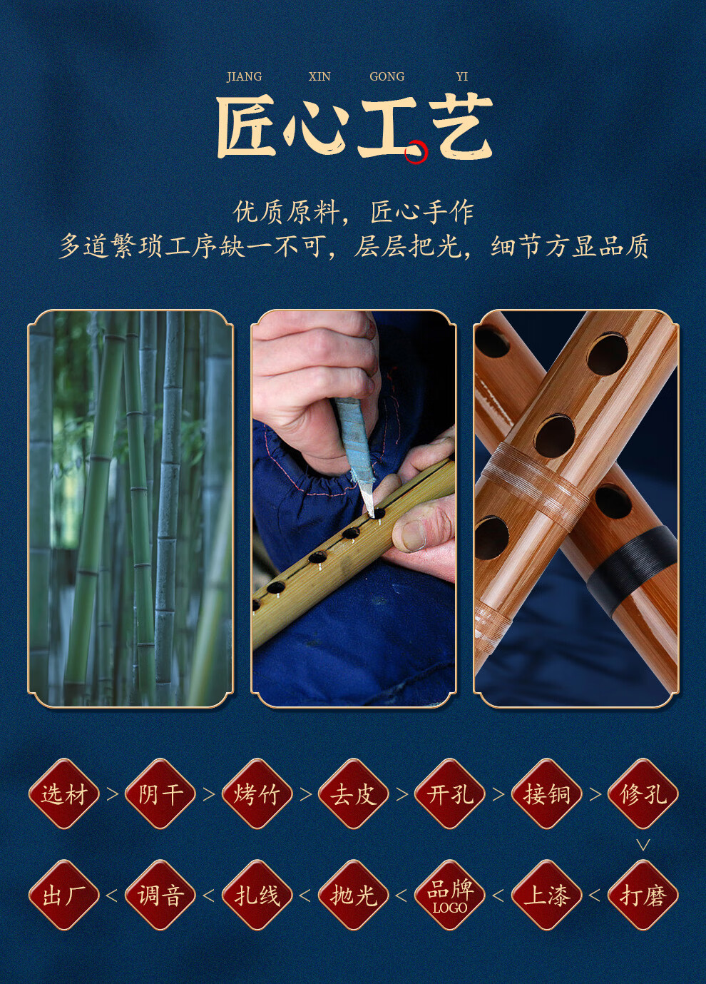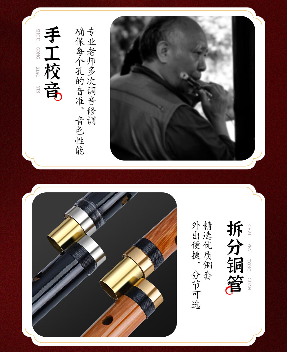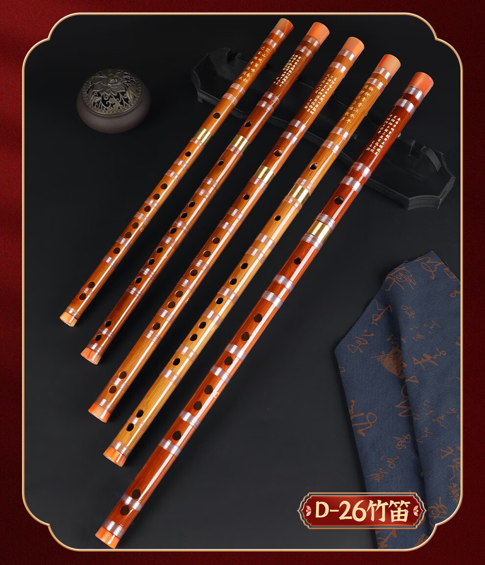 Minsine Bamboo Refined Flute Bamboo Flute C Key Single Plug White Copper White Coil Professional Flute Playing Instrument D45 Black
