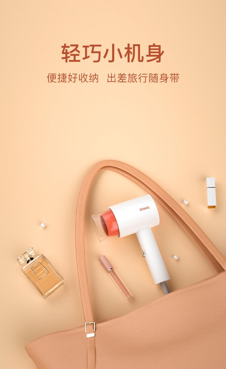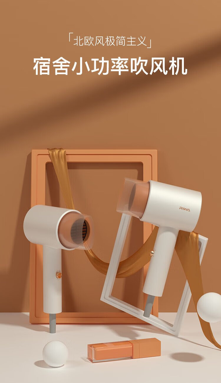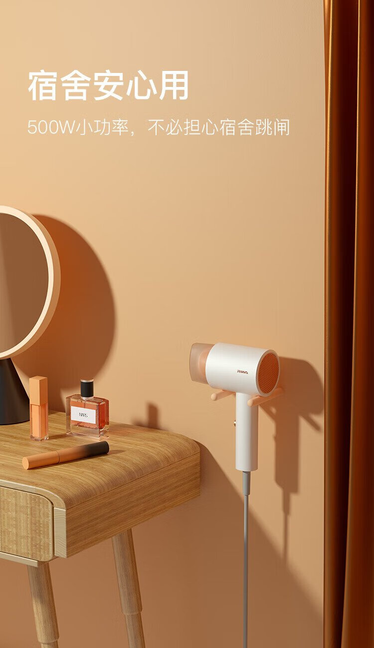 RIWA 500W hair dryer low power hair dryer for student dormitory dormitory limited power hair dryer quick-drying mini portable back-to-school supplies RC-7105