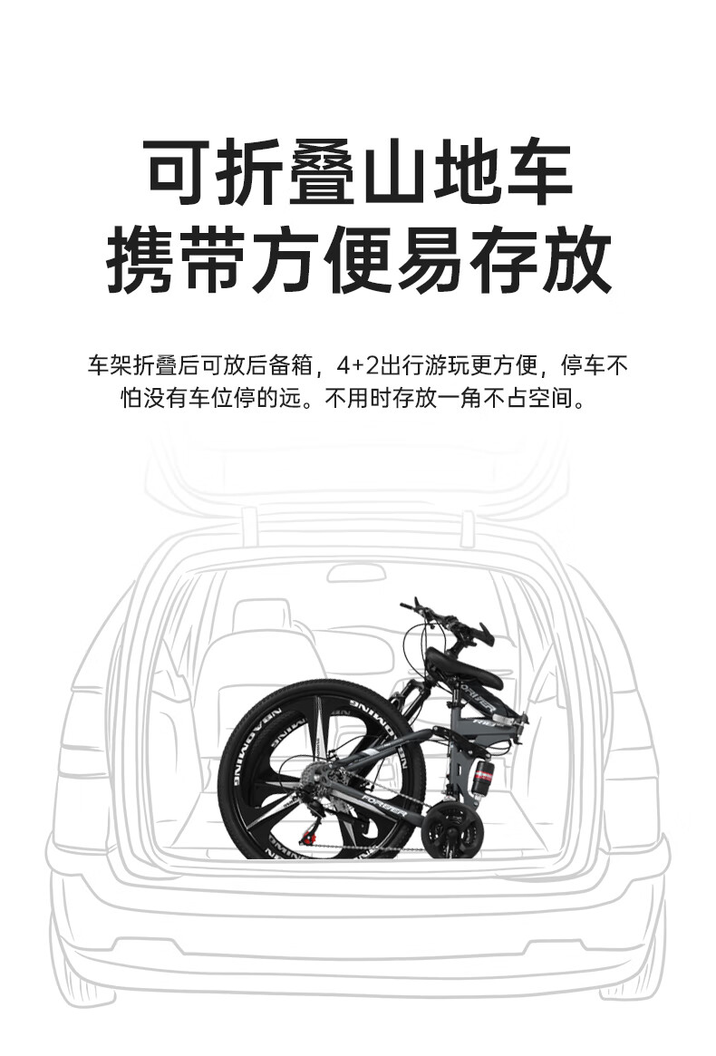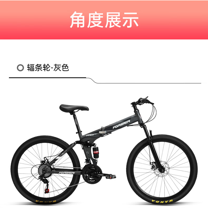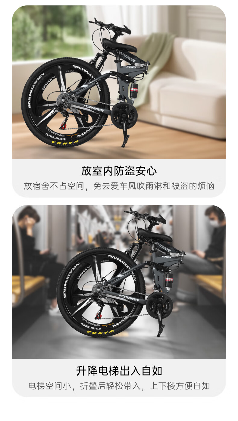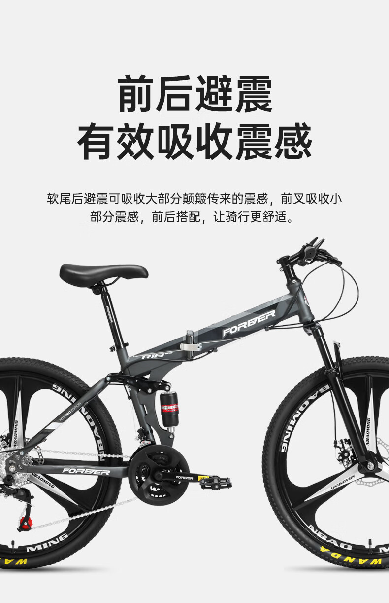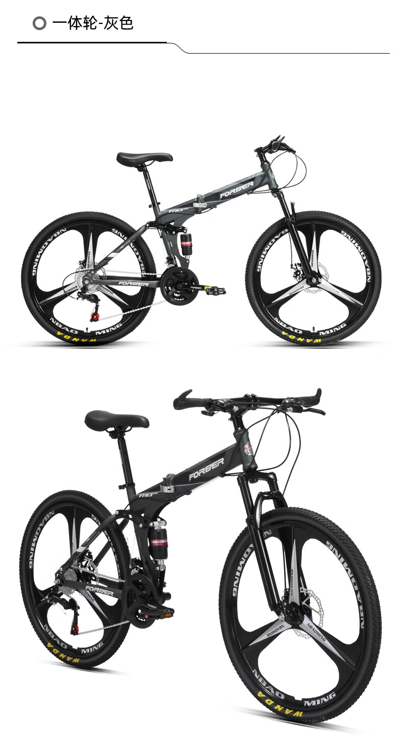Permanent 26-inch front and rear shock-absorbing soft-tail folding mountain bike variable speed men's and women's adult and children's bicycle integrated wheel