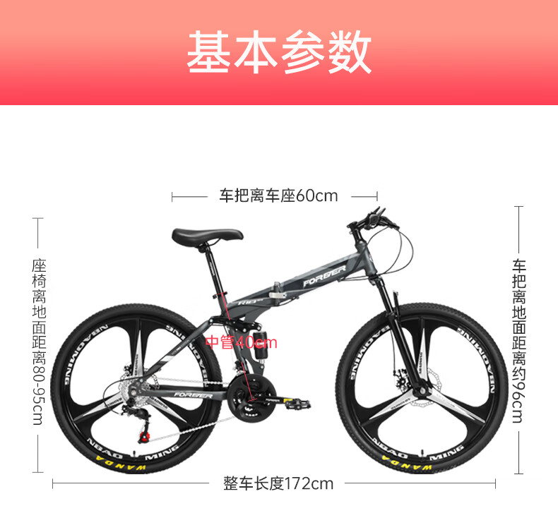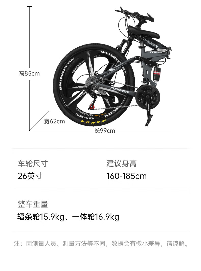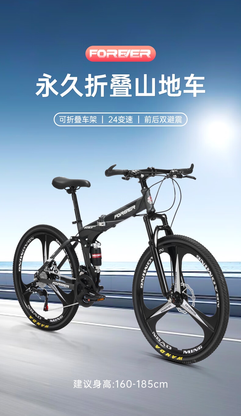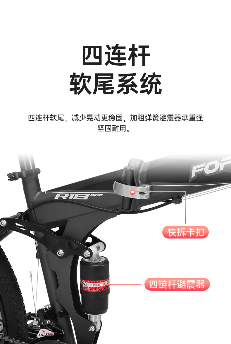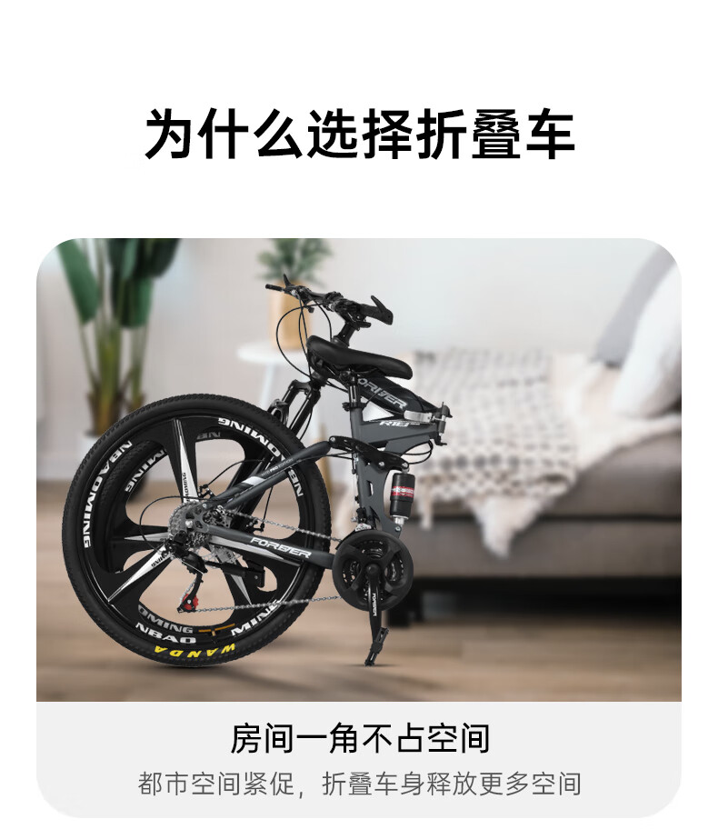 Permanent 26-inch front and rear shock-absorbing soft-tail folding mountain bike variable speed men's and women's adult and children's bicycle integrated wheel