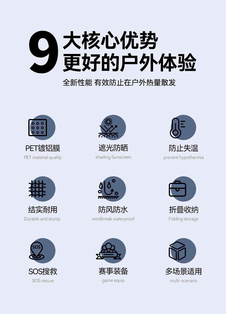 Minggu emergency blanket thermal blanket outdoor emergency pad earthquake rescue blanket double-sided rescue blanket thermal insulation sun protection double-sided gold and silver 160*210cm 5 pieces CW752601