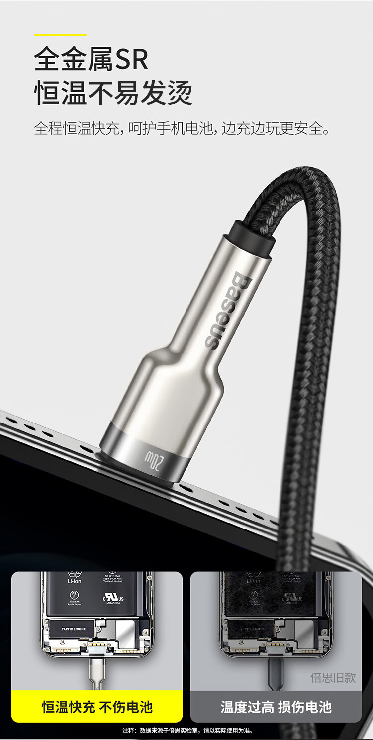 Baseus Apple data cable PD fast charging 20W charger cable Type-c to Lightning suitable for iPhone14/13/12pro/11XSMax/XR mobile phone 0.25m black
