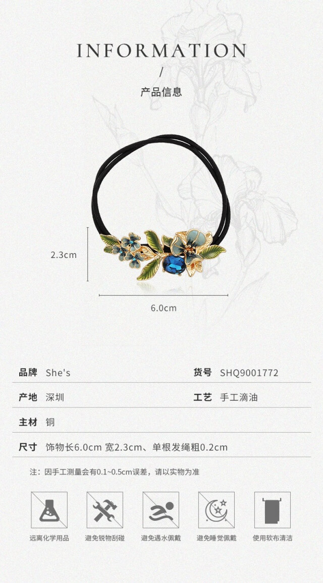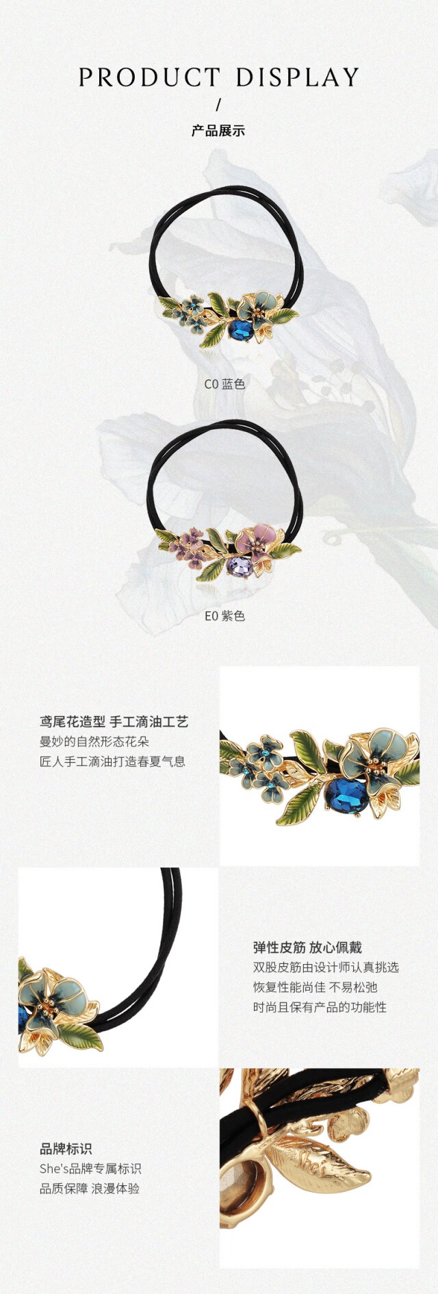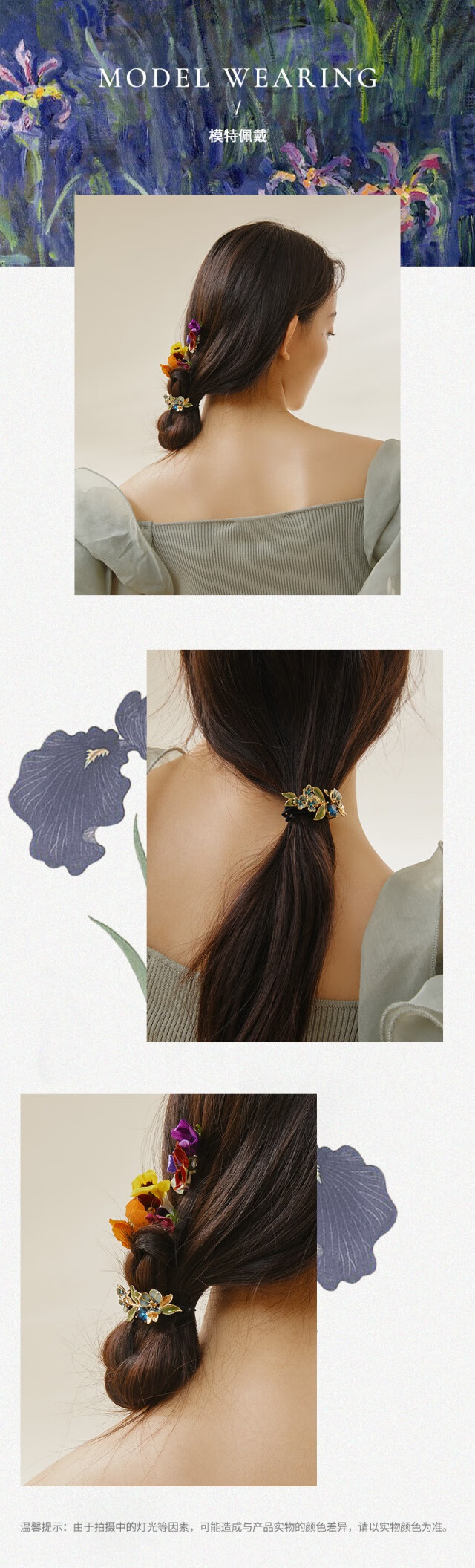 She s Qianzi Van Gogh iris handmade oil-dropped headband gradient flower double-strand rubber band headband birthday gift for girlfriend