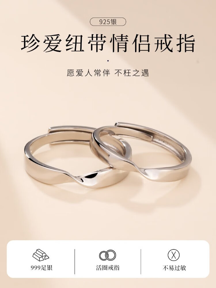 Old silversmith Möbius strip twisted ring s925 silver ring couple silver ring female Valentine's Day gift for girlfriend