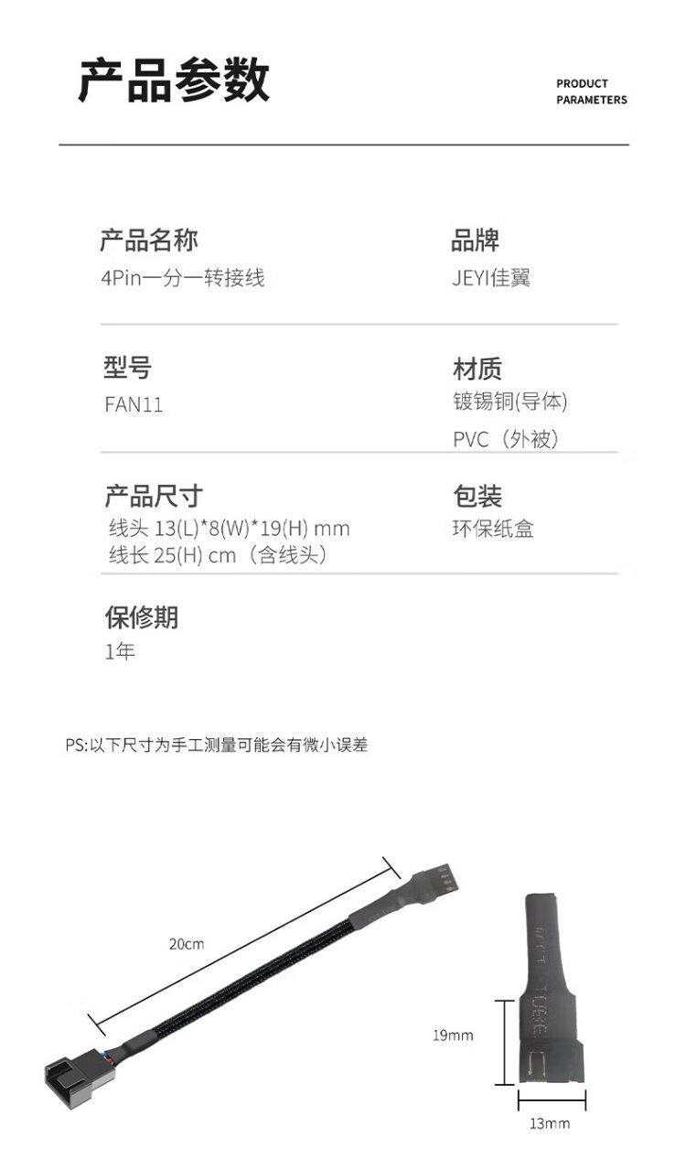 JEYI Desktop Computer Host Motherboard 4PIN Fan Adapter Interface Extension Cable Adapter Cable FAN11