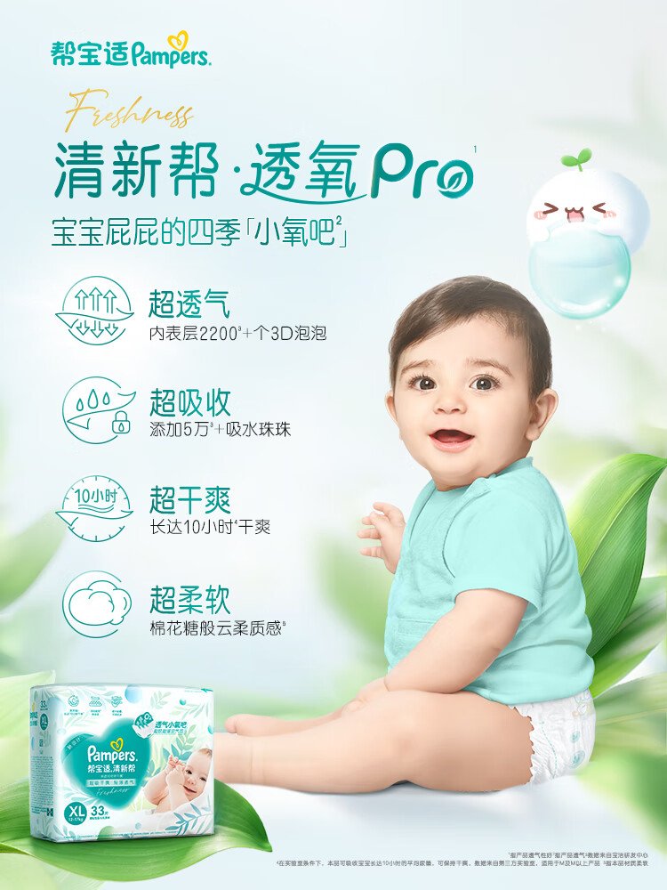 Pampers ultra-thin breathable fresh breathable Pro baby diaper diaper XL92