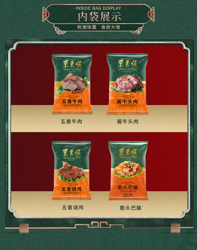 Donglaishun beef cooked food gift box 1450g halal Chinese time-honored specialty Beijing braised pork fragrant Donglai New Year gift