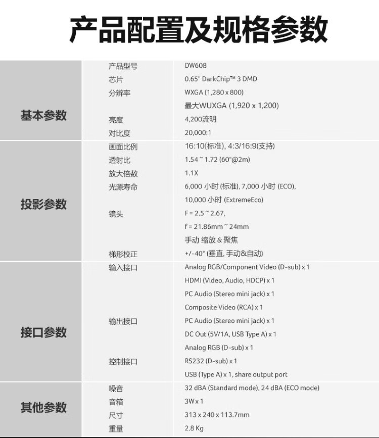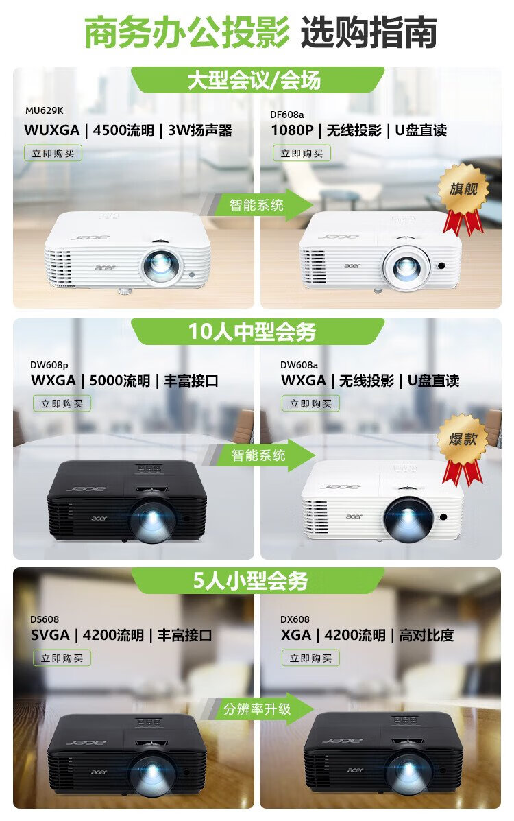 Acer DW608 projector projector office projector (widescreen WXGA 4200 lumens daytime direct projection high contrast built-in speaker)