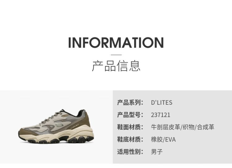 Skechers men's shoes autumn thick sole heightening dad shoes retro sports shoes comfortable soft sole outdoor casual shoes 237121