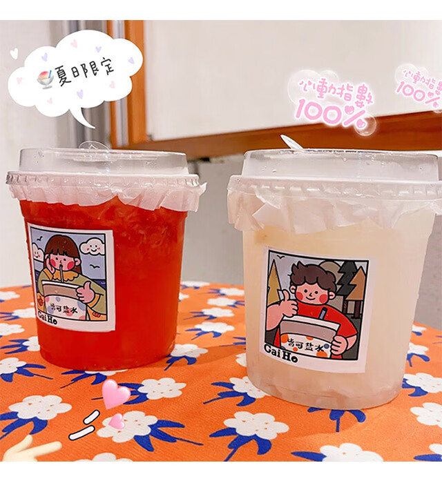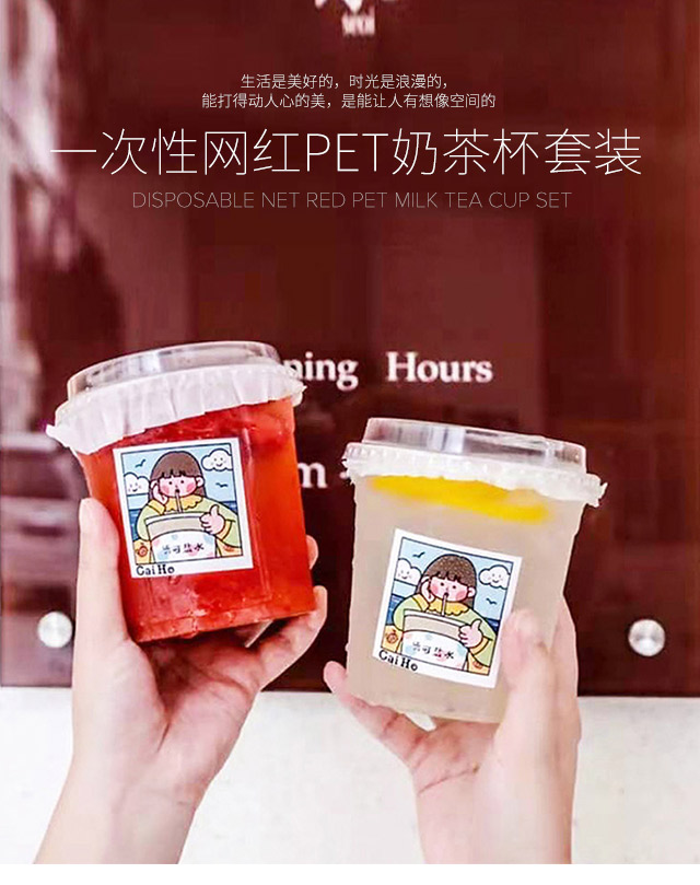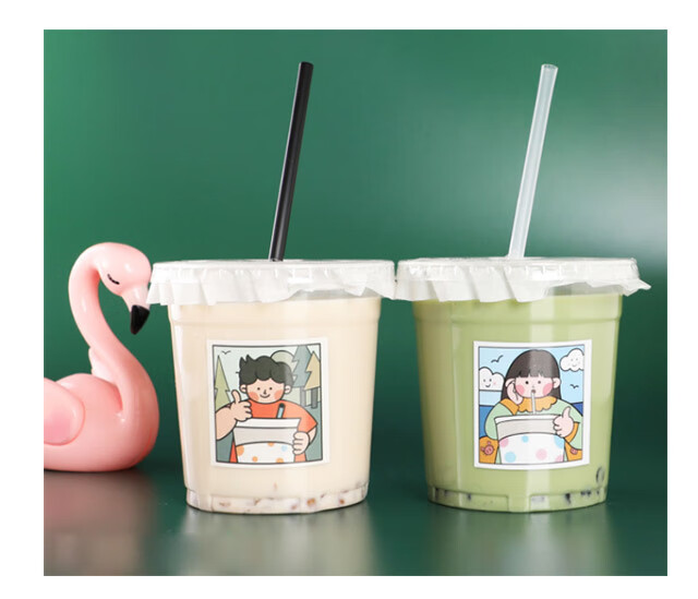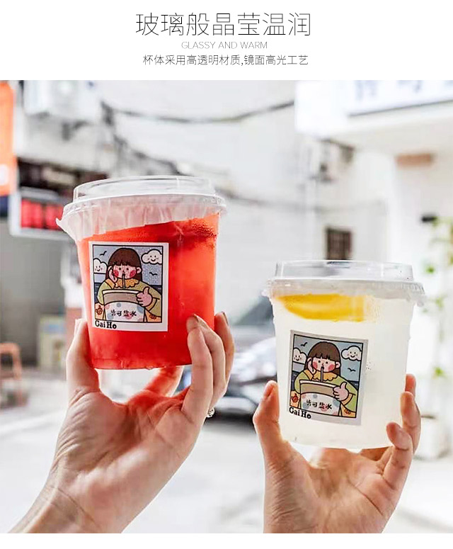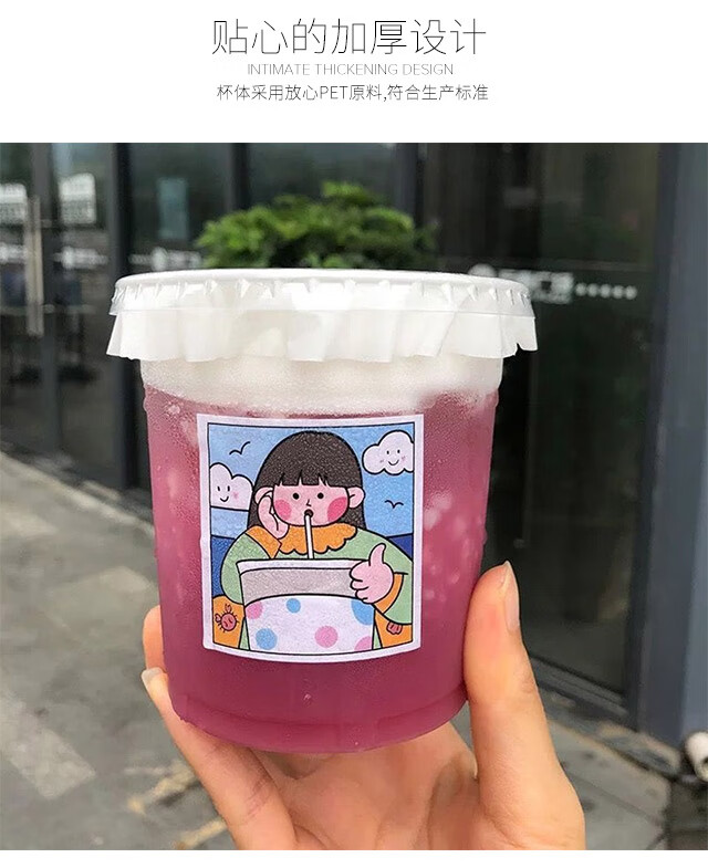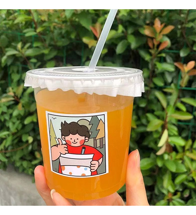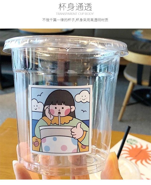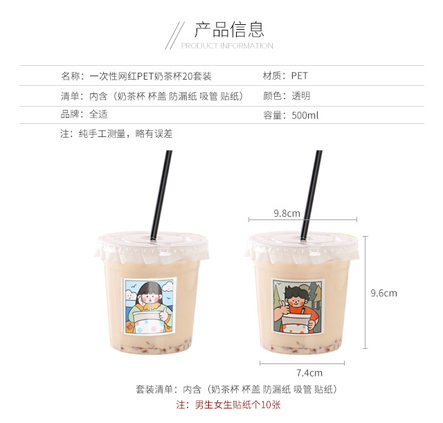 Quanshi Disposable PET Drink Cups with Lid 500ml*20 Sets Plastic Cup Dudu Cups with Straws and Leak-proof Paper Stickers