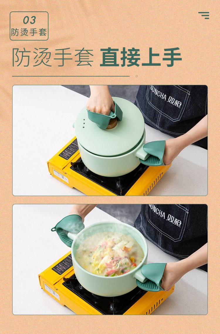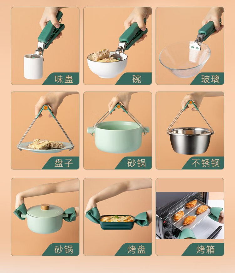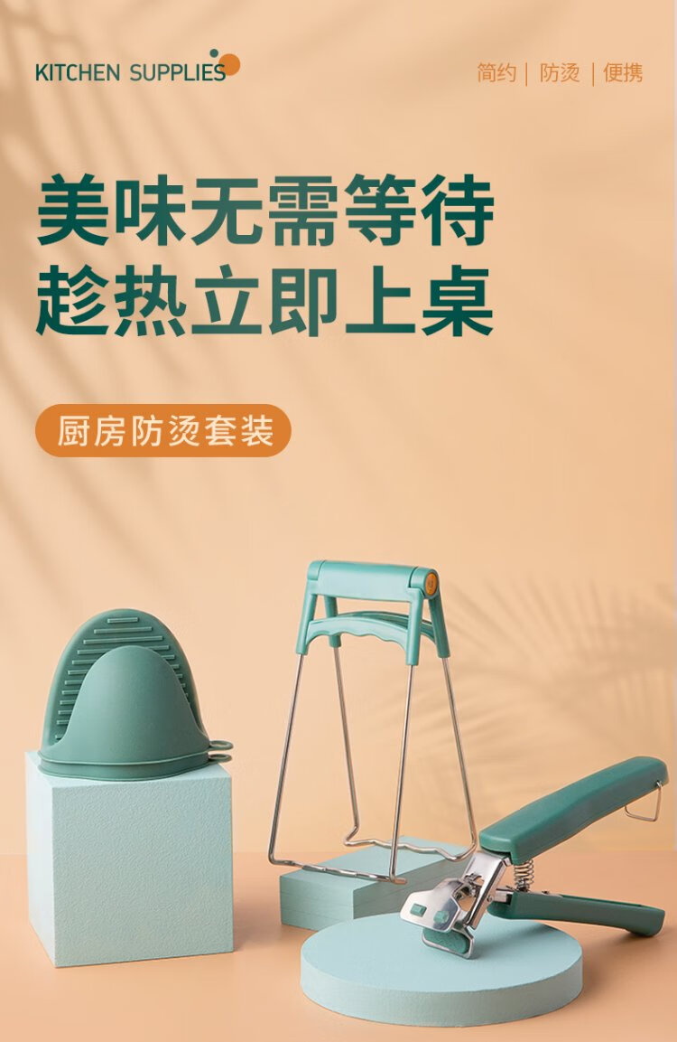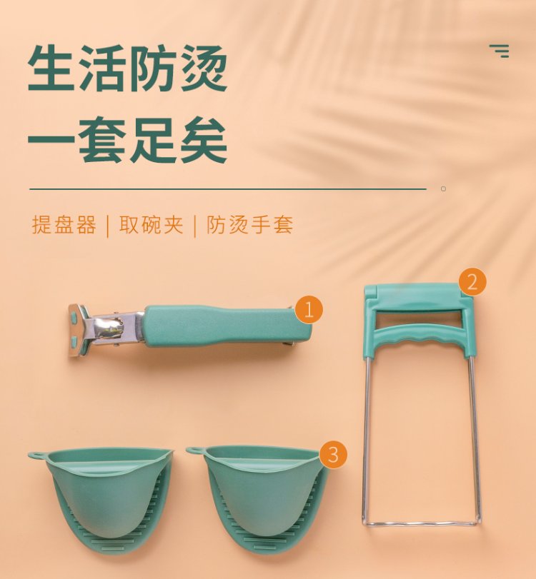 Double gun anti-scalding bowl gripper, anti-scalding gloves plate lifter 3-piece set, kitchen supplies stainless steel silicone anti-slip bowl gripper