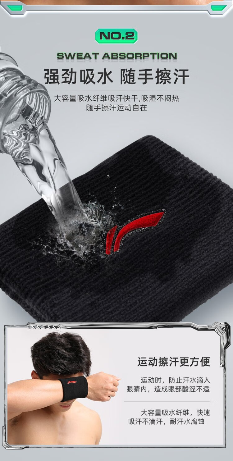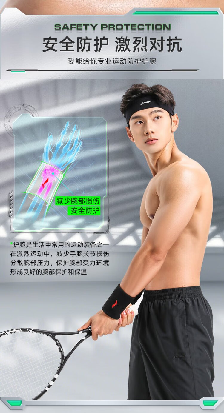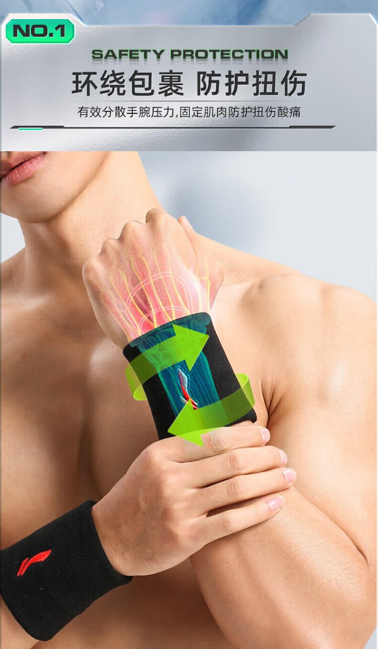 Li Ning wristband sports fitness sweat-absorbing wristband with badminton basketball volleyball tennis tenosynovitis wrist strain protective gear