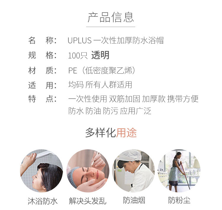 Youjia UPLUS disposable shower cap, thickened 100 pieces, multi-functional waterproof shower cap, hood and hair care cap