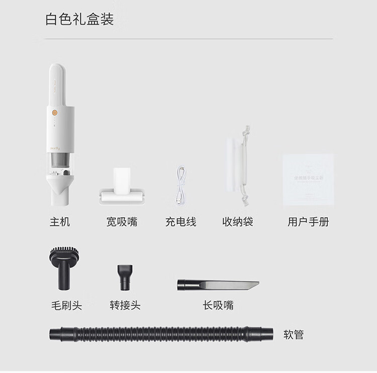 (cleanfly) Cleanfly H2 car vacuum cleaner with large suction power 16800pa Xiaomi Youpin wireless handheld wet and dry high-speed brushless motor vacuum cleaner for home and car white luxury set