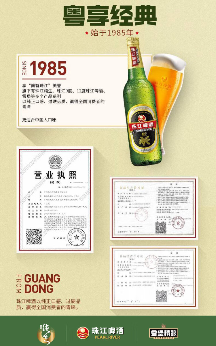 PEARL RIVER 12 degrees classic old Pearl River beer 600ml*12 bottles full box OCC