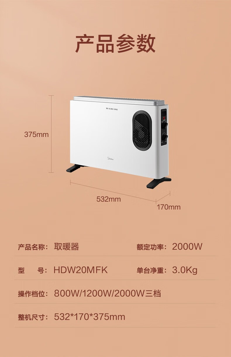 Midea heater household small heater energy-saving electric heater HDW20MFK