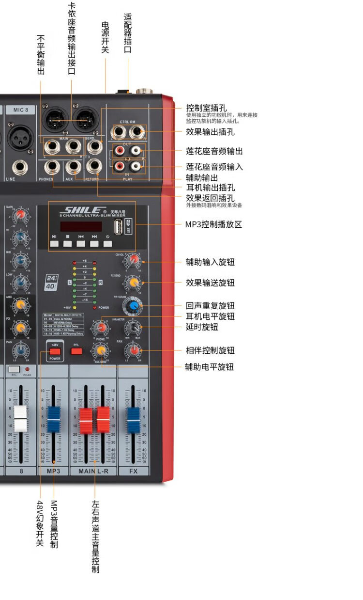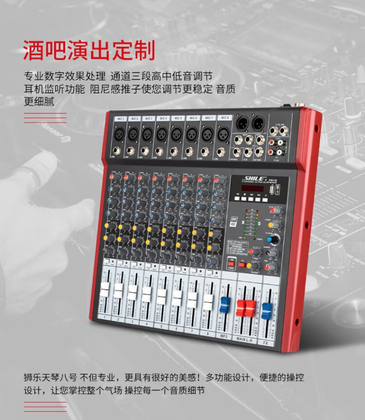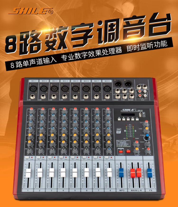 SHILE Tianqin No. 8 professional 8-way mixer with DSP effect stage performance wedding event conference room remote video effector pre-amp reverberator