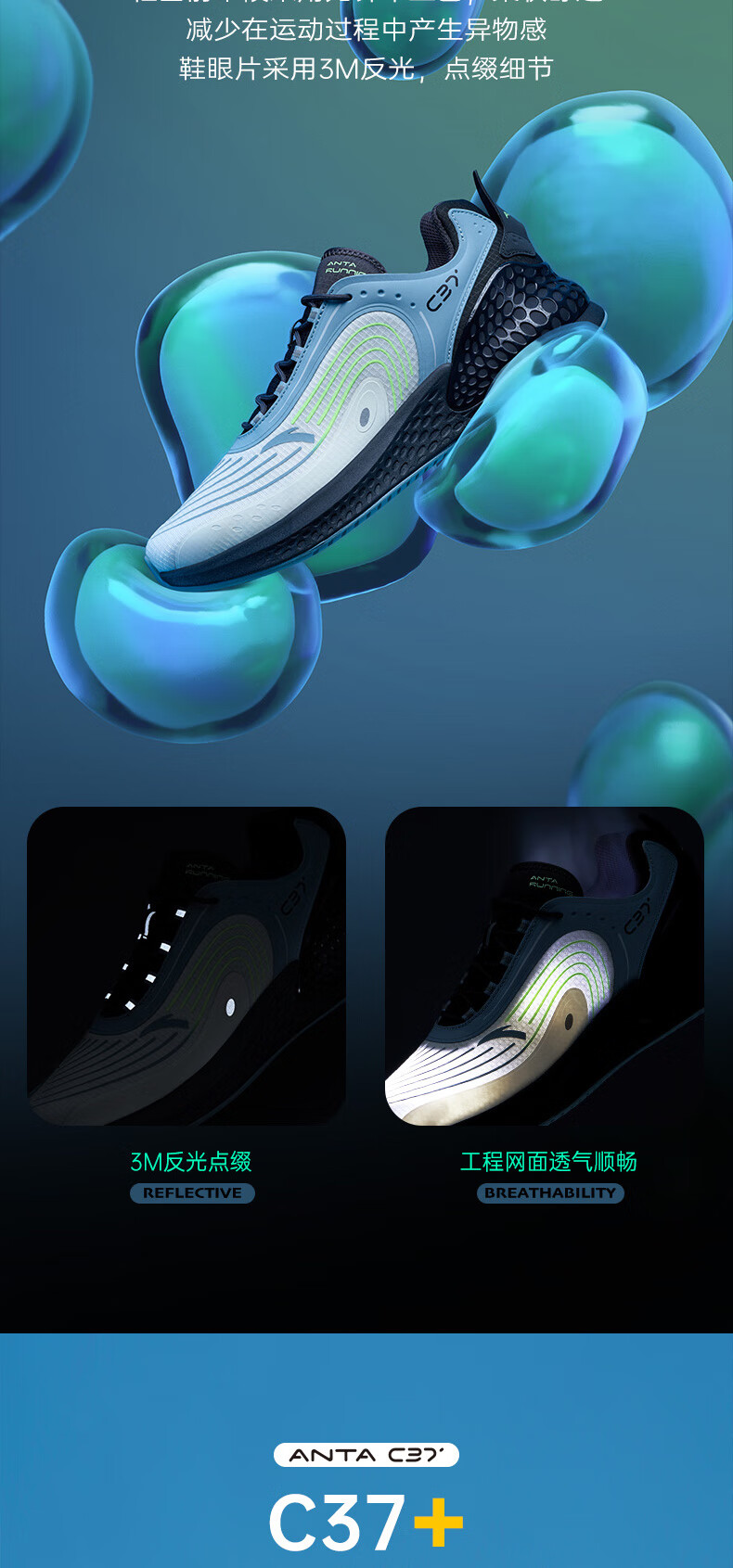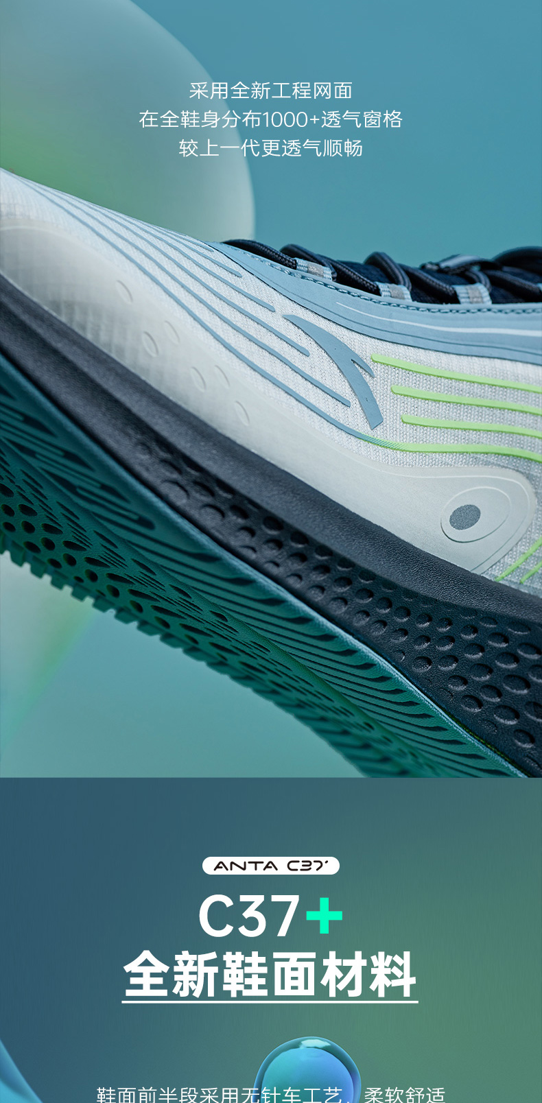 ANTA C37+丨Soft-soled running shoes, men's shoes, summer couple style, breathable and comfortable skipping shoes, casual sports shoes