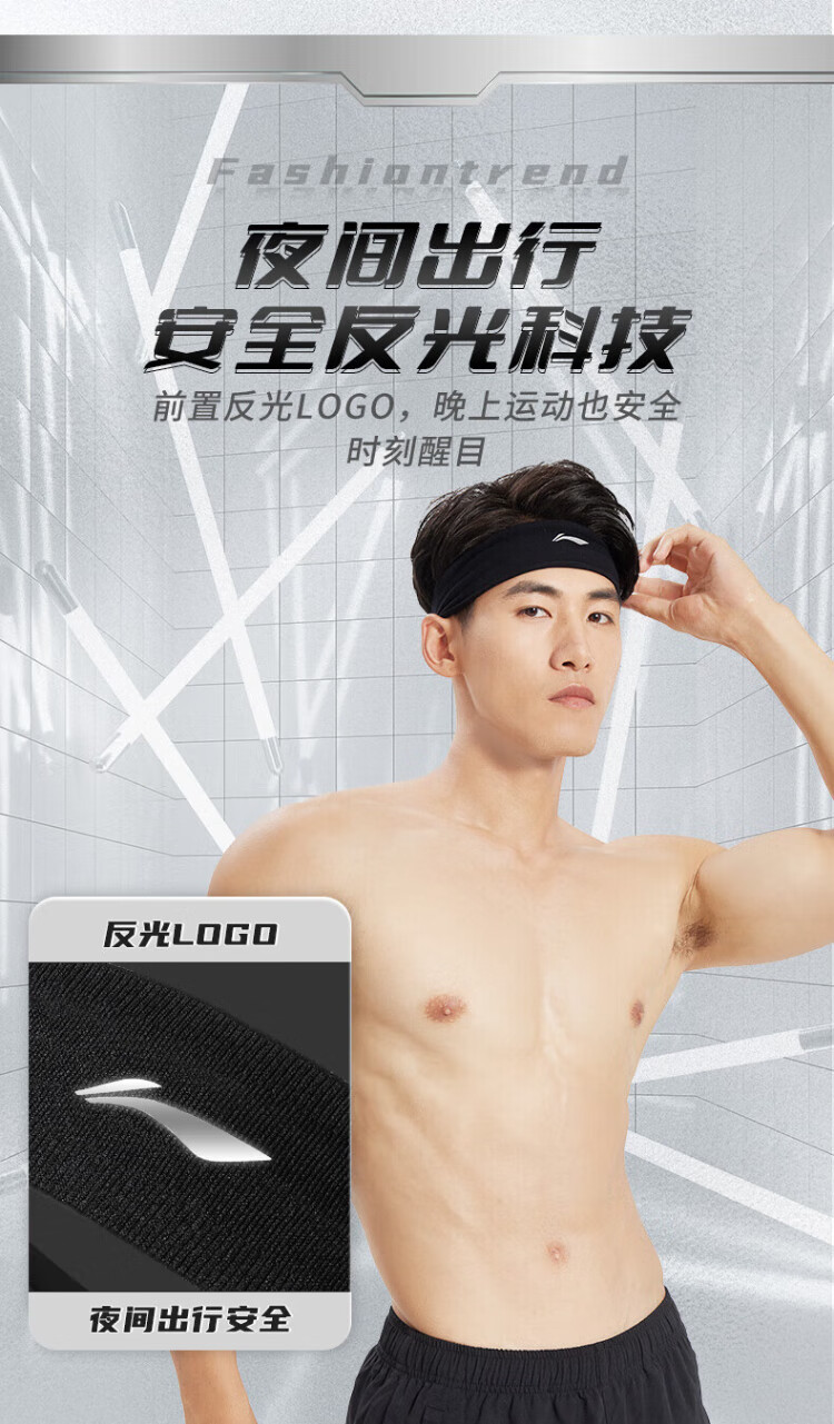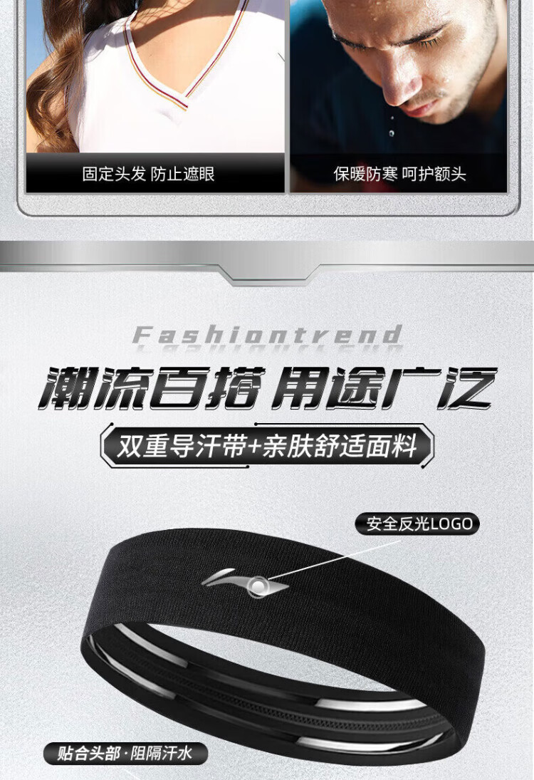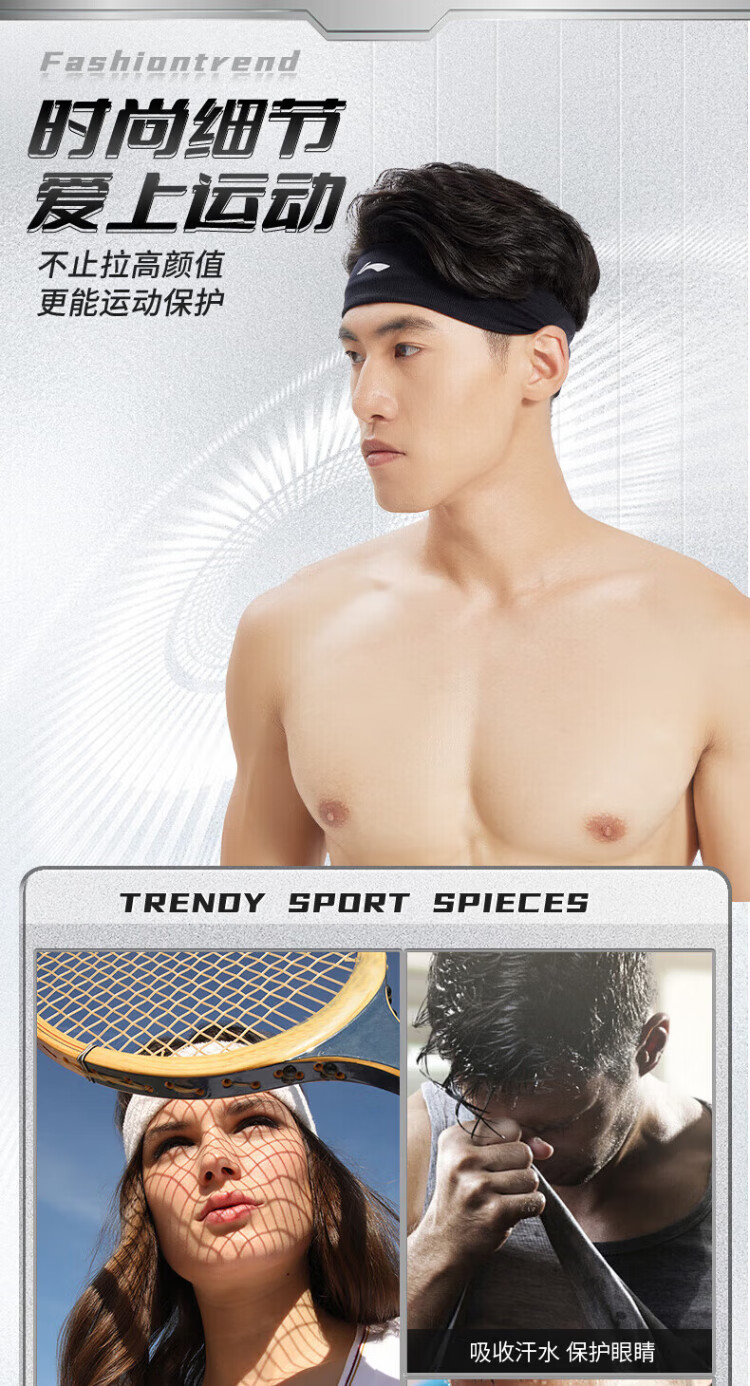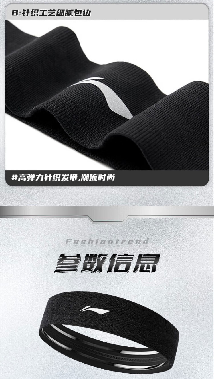 Li Ning (LI-NING) sports headbands for men and women, antiperspirant, sweat-absorbent and sweat-guiding belts, running headbands, turbans, basketball badminton headbands