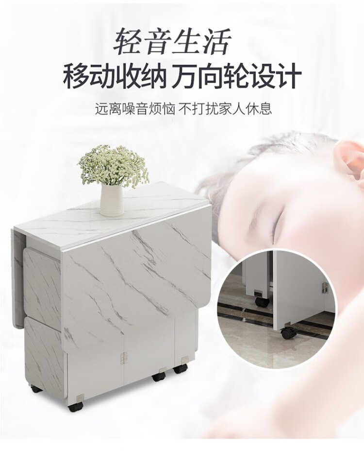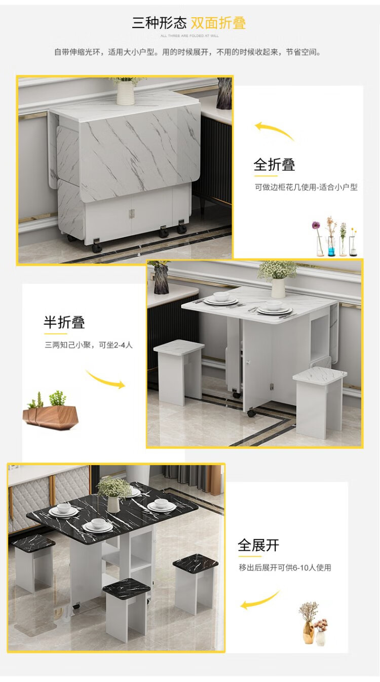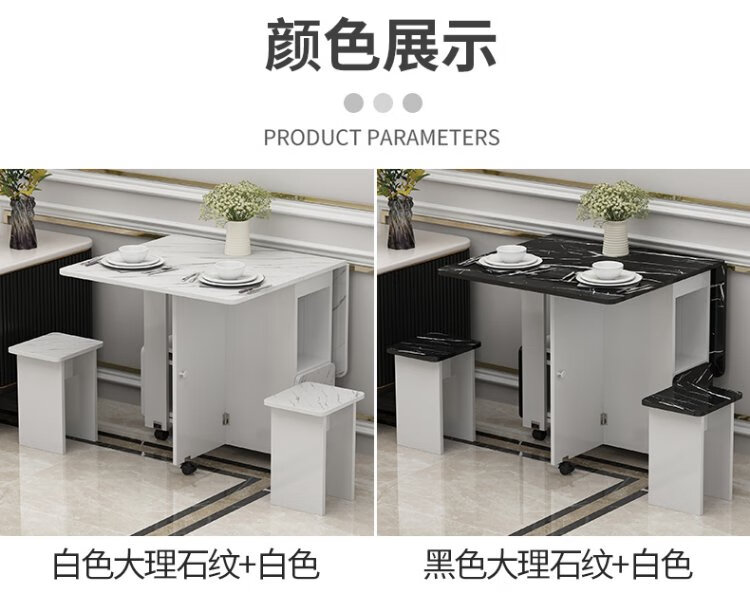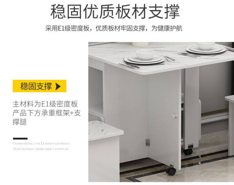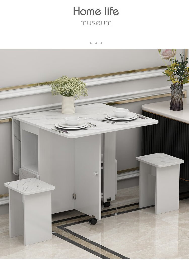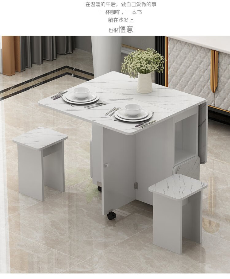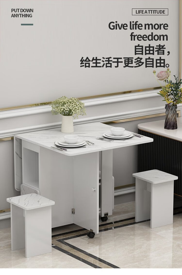 KULIN folding dining table household white table top with storage cabinet removable small apartment dining table retractable