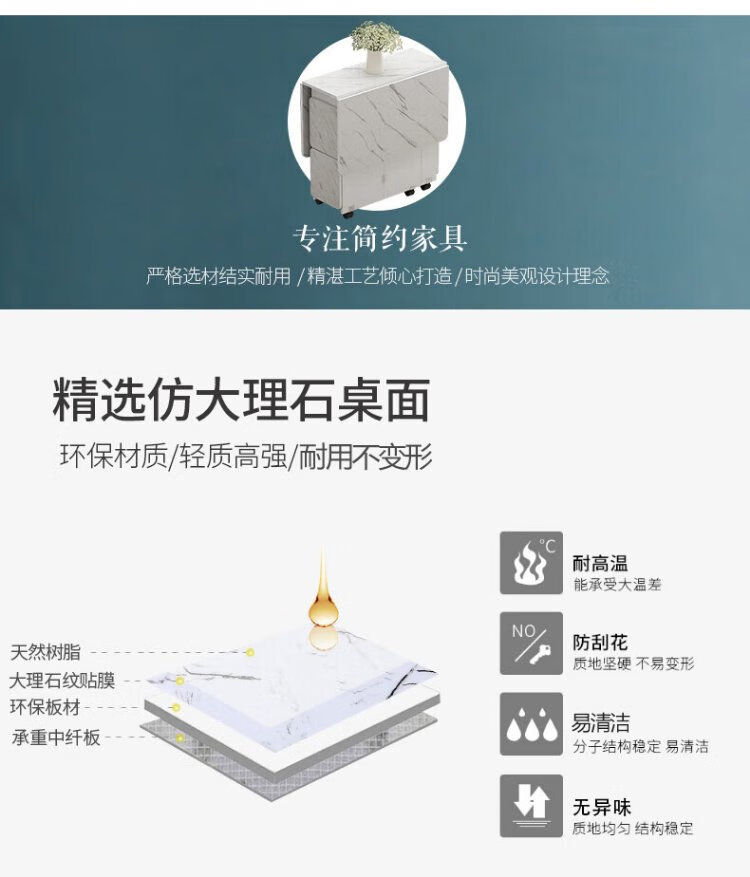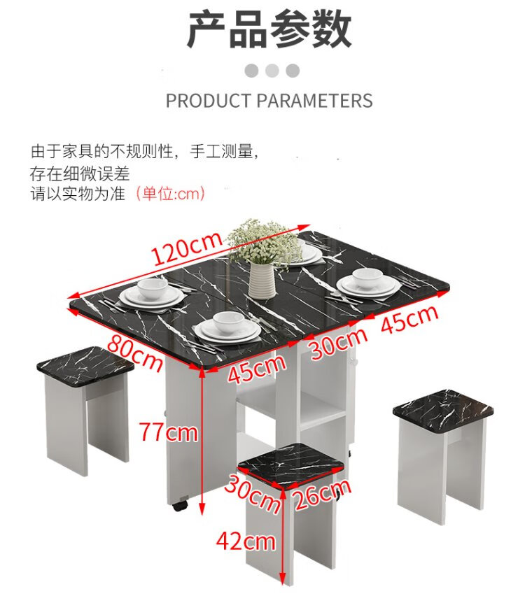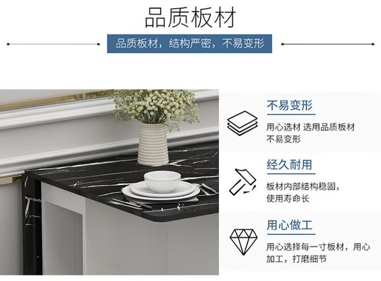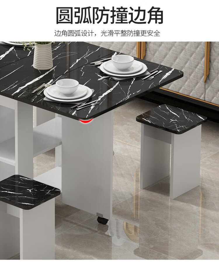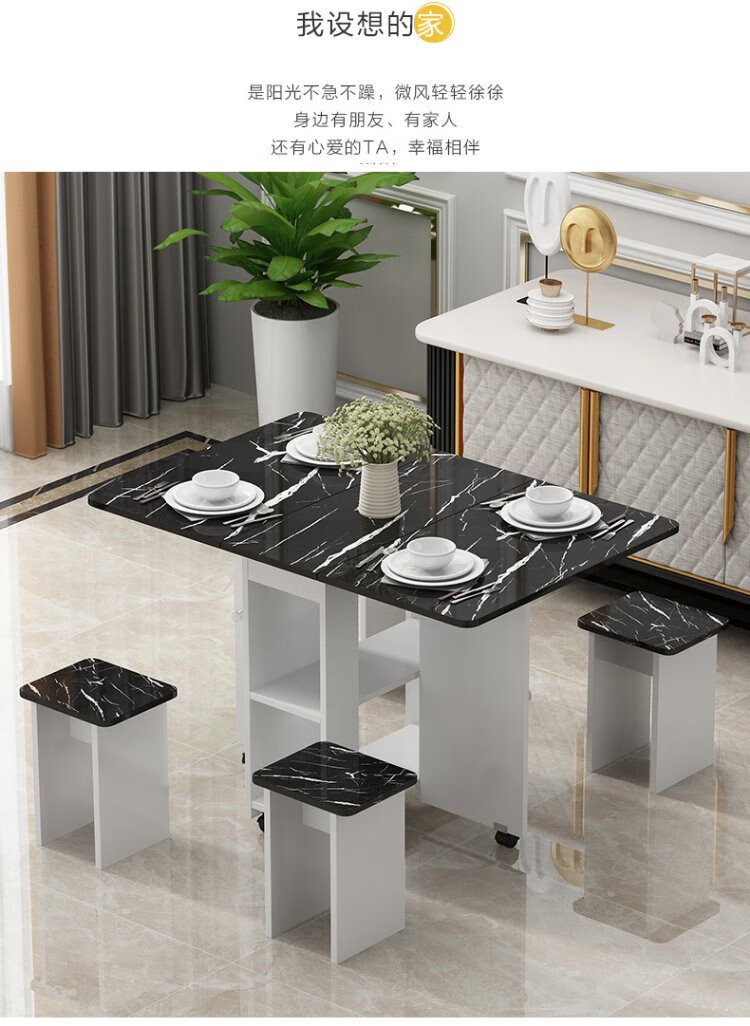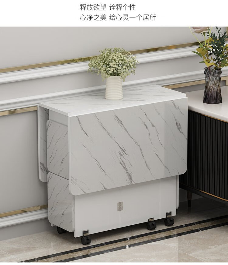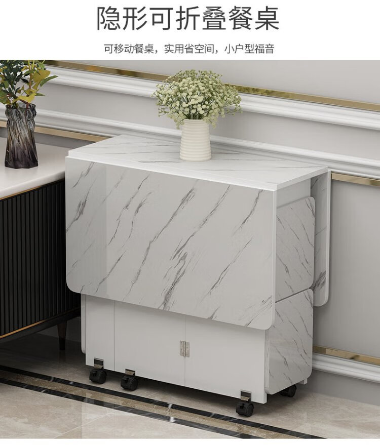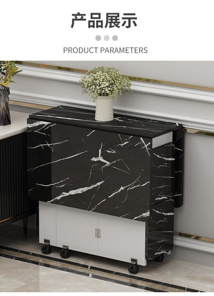 KULIN folding dining table household white table top with storage cabinet removable small apartment dining table retractable