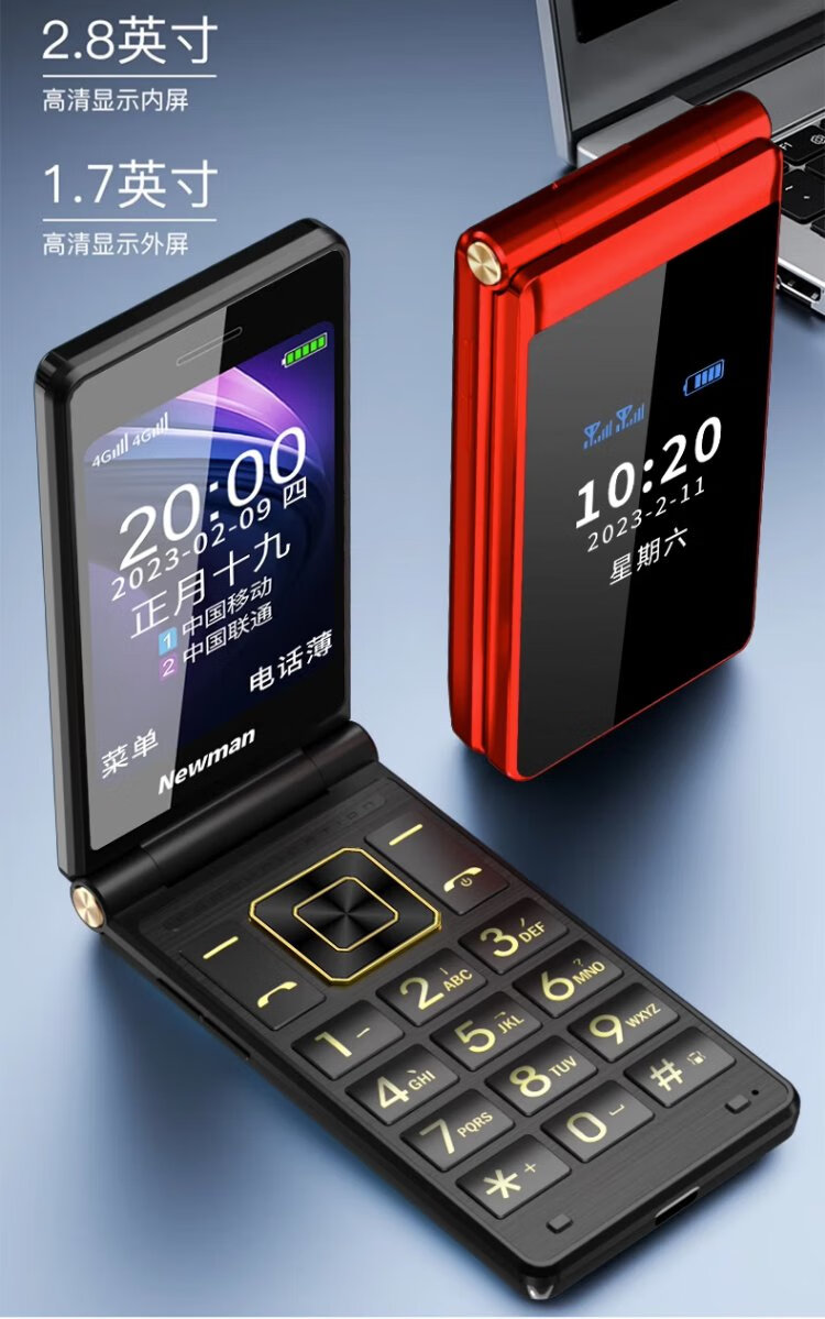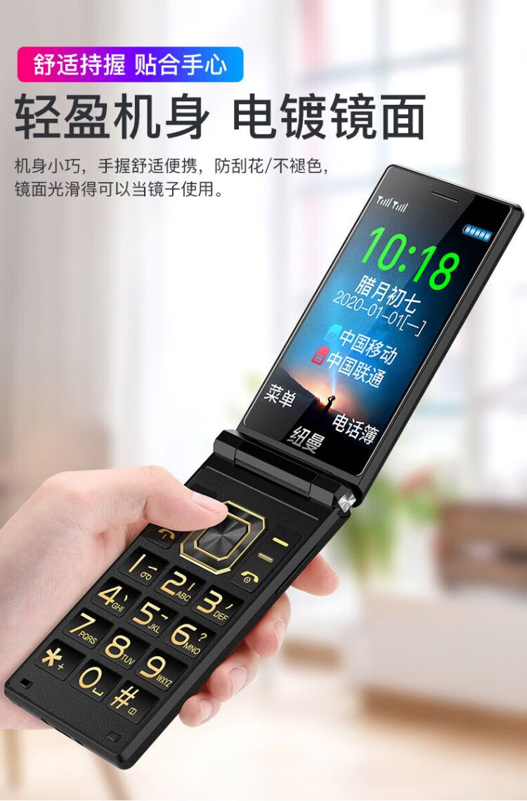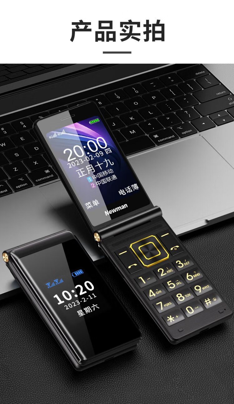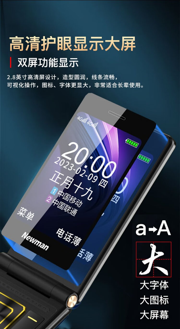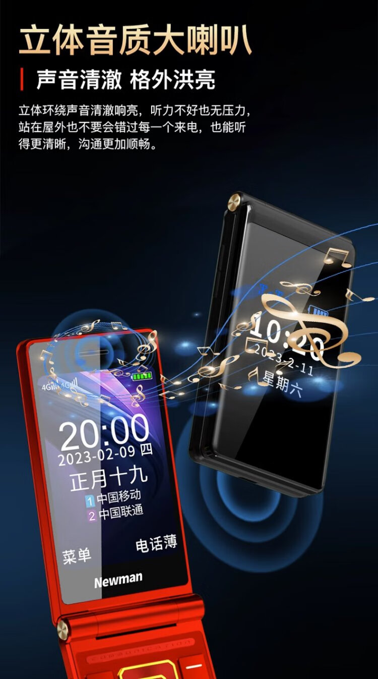 Newman F6 4G Full Network Flip Mobile Phone for the Elderly Dual SIM Dual Standby Extra Long Standby Big Font Big Sound Big Button Elderly Phone Student Backup Function Phone Elegant Black