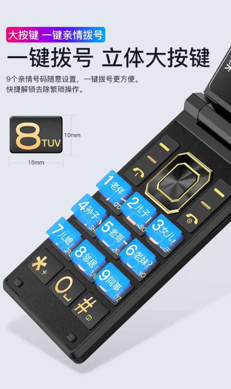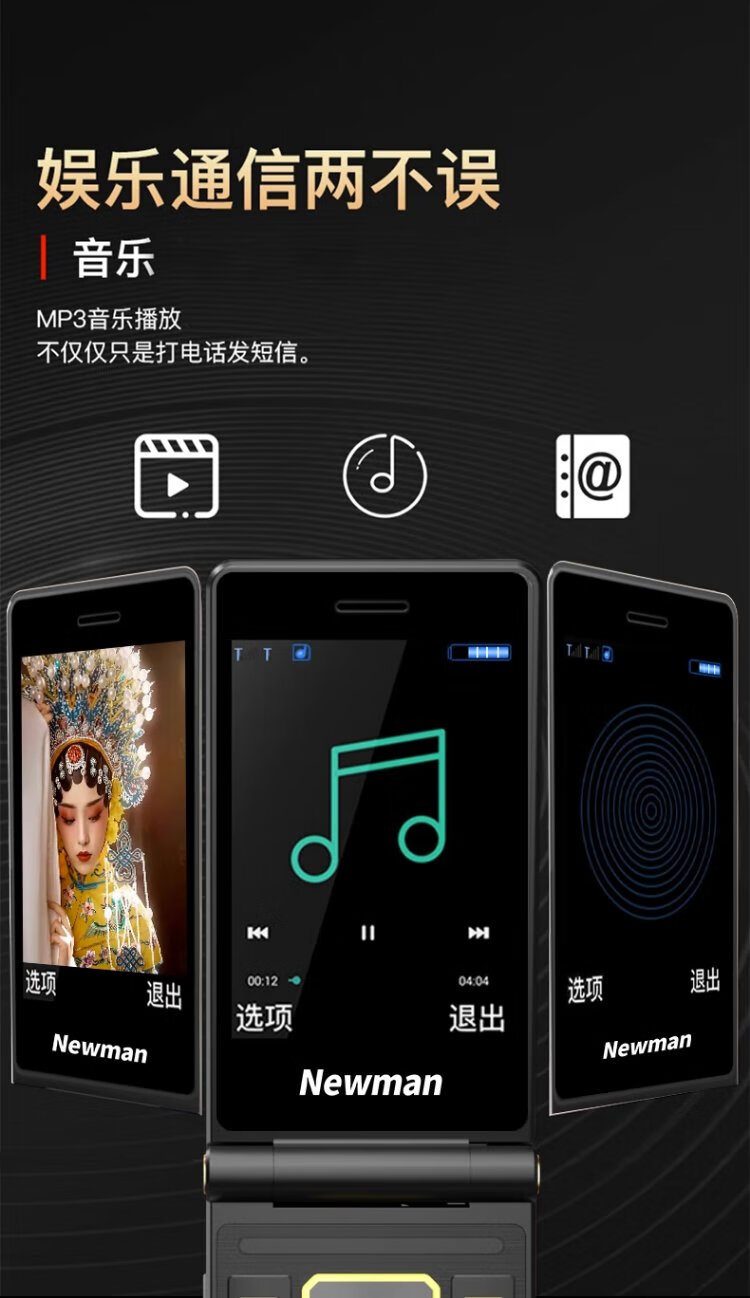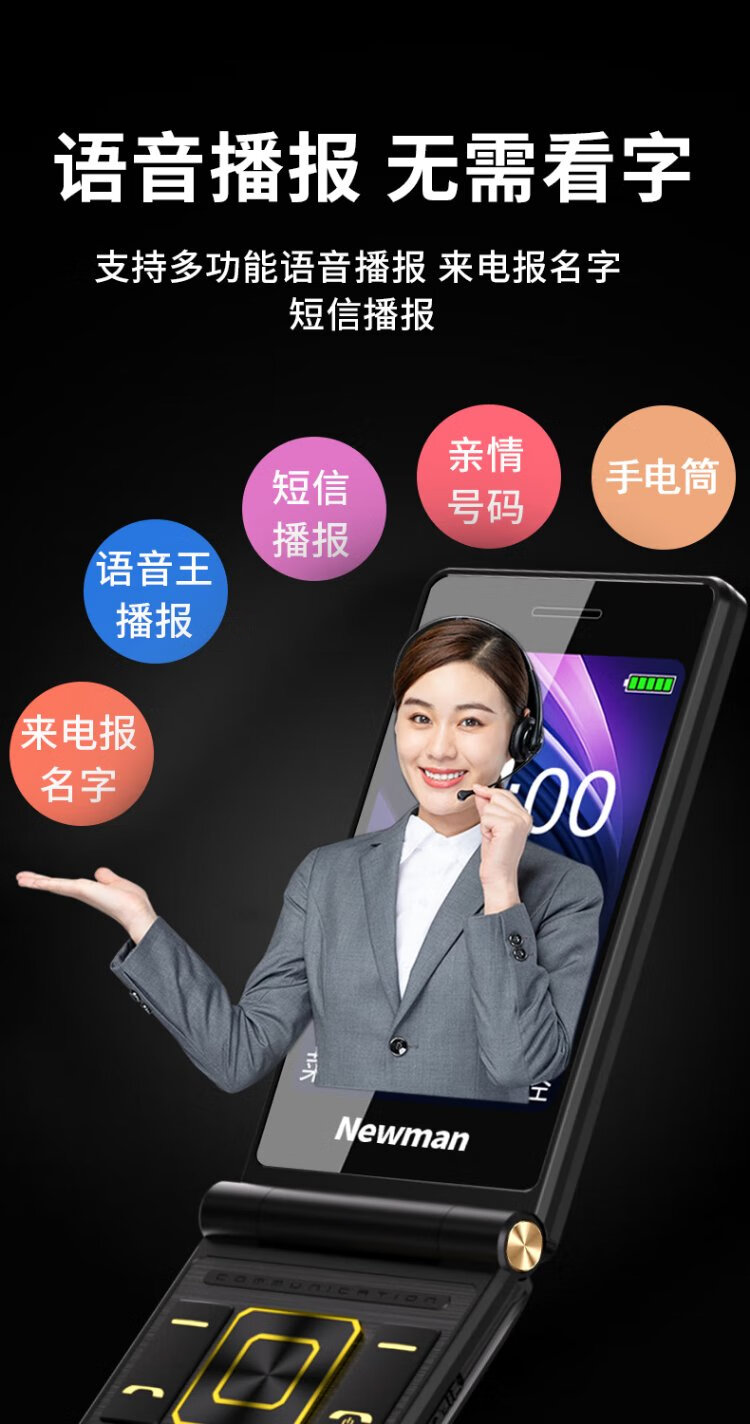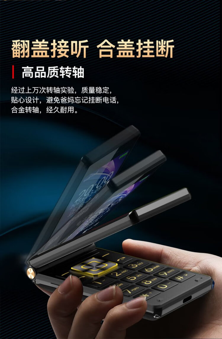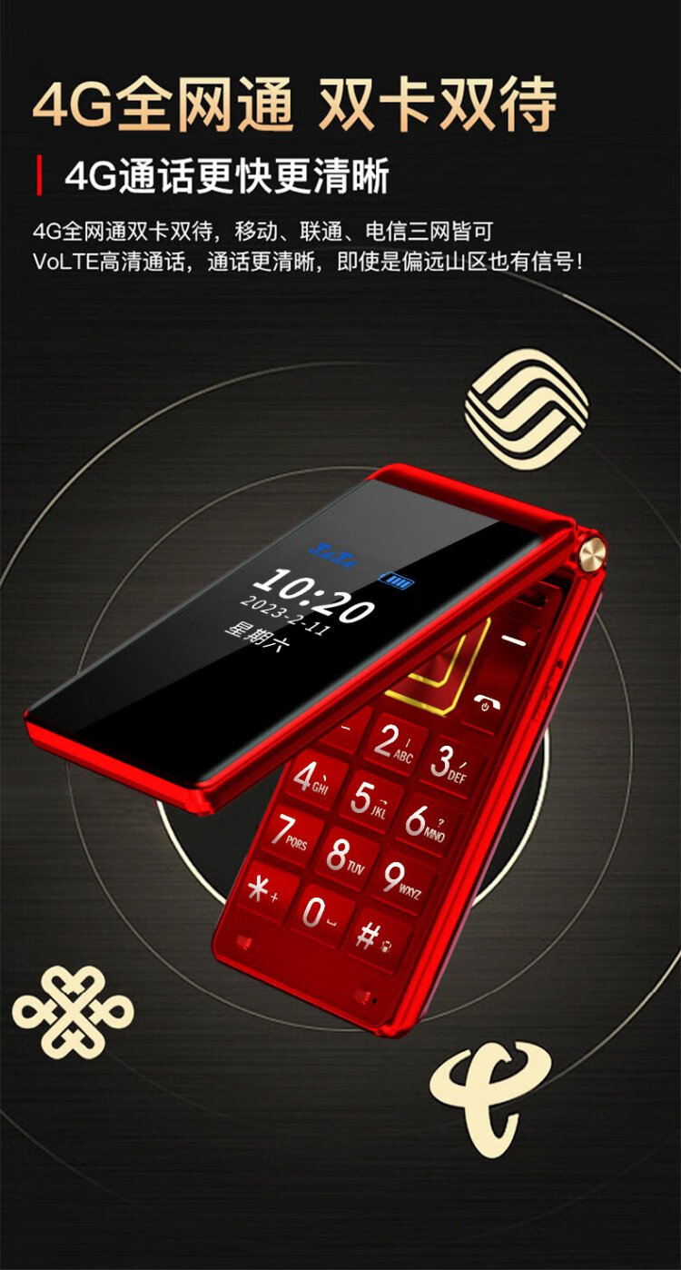 Newman F6 4G Full Network Flip Mobile Phone for the Elderly Dual SIM Dual Standby Extra Long Standby Big Font Big Sound Big Button Elderly Phone Student Backup Function Phone Elegant Black