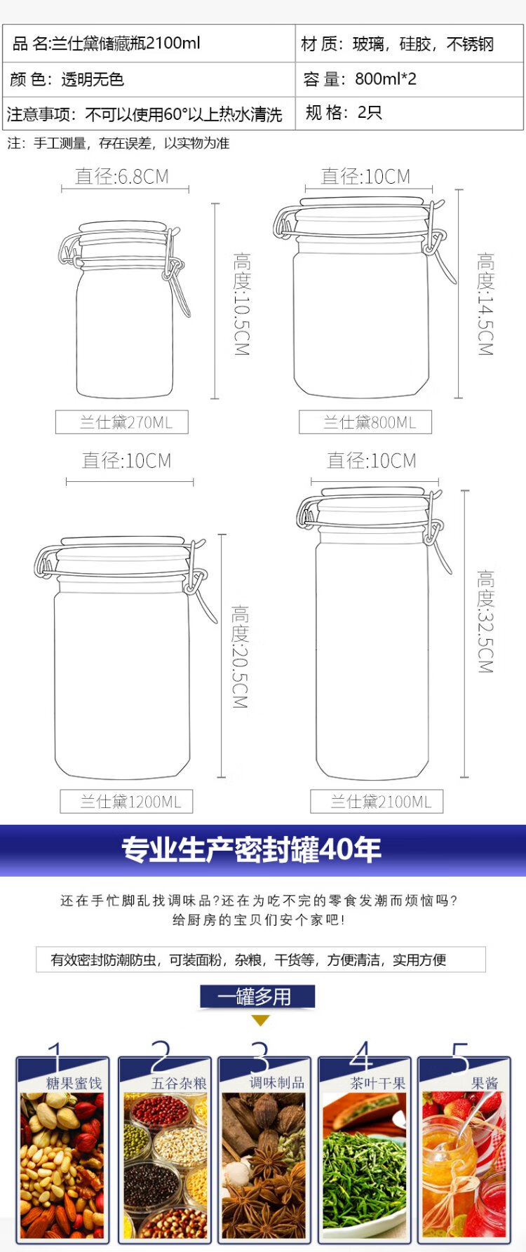 Scybe sealed jar household glass sealed jar set wine container pickle jar glass bottle Lanshi 800ml 2 pieces