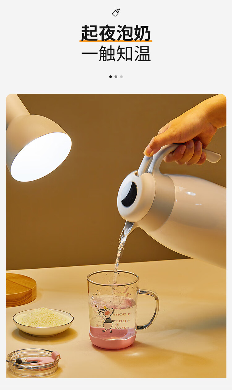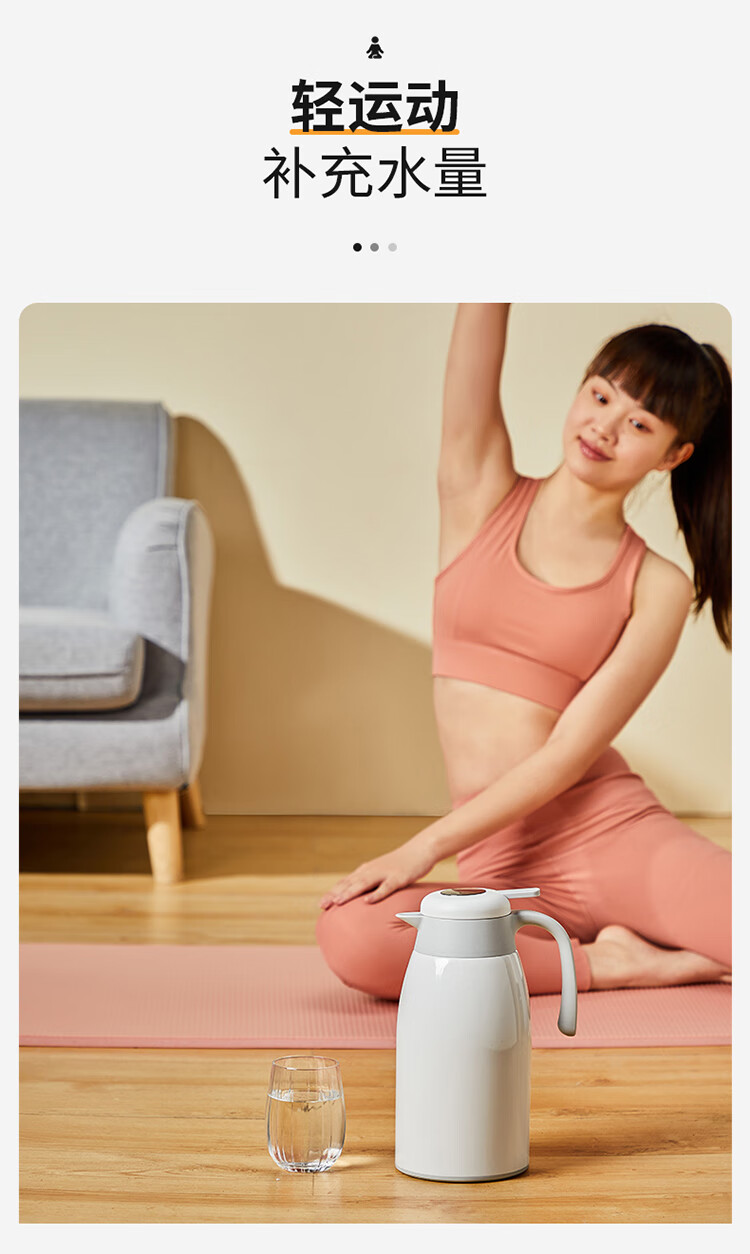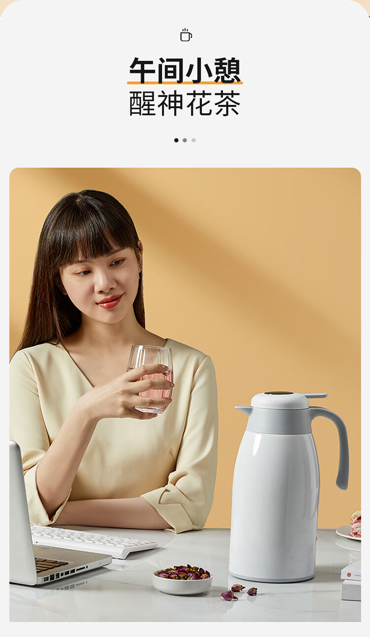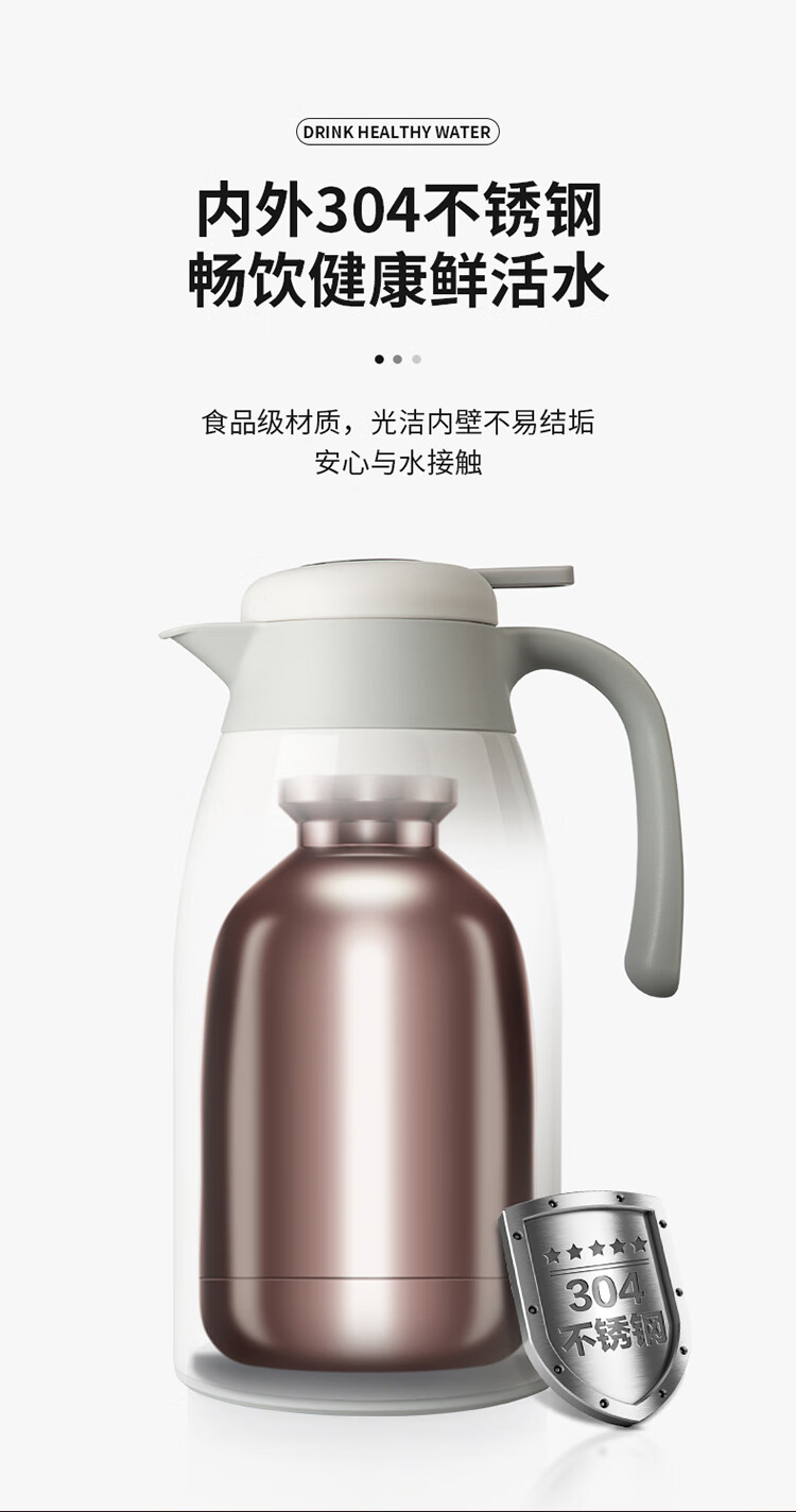 Cuidahuang 304 stainless steel household large capacity non-slip bottom intelligent temperature display thermos kettle elegant white 2.2L